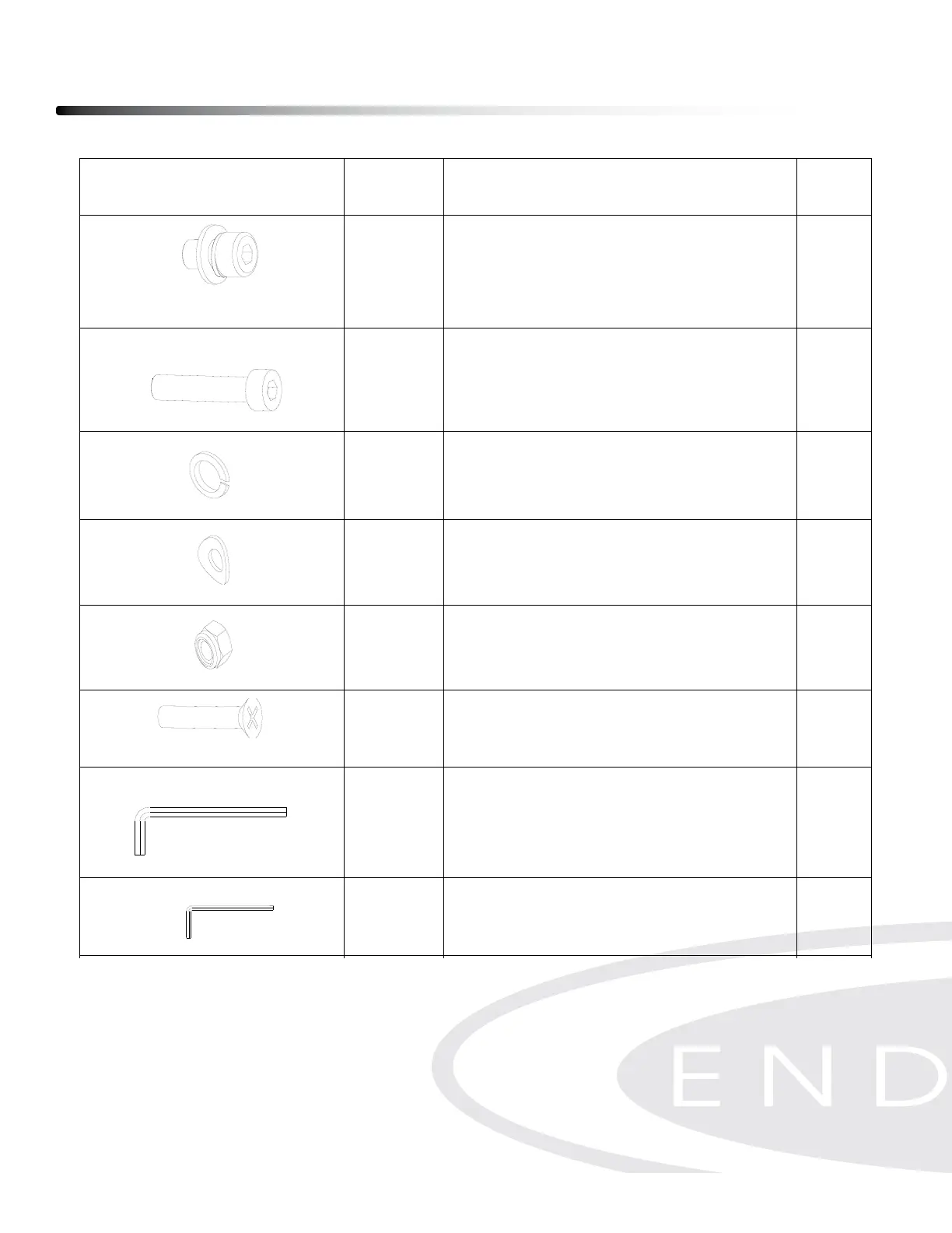 After unpacking the unit, open the hardware bag and make sure that you have all the