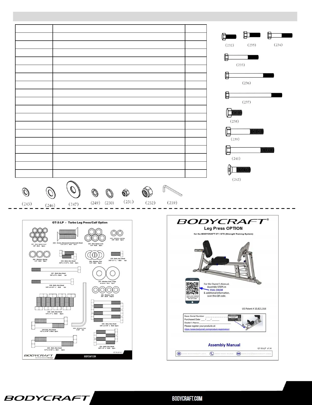 Assembly Parts, Hardware, GT-LP (Leg Press) 2 of 2