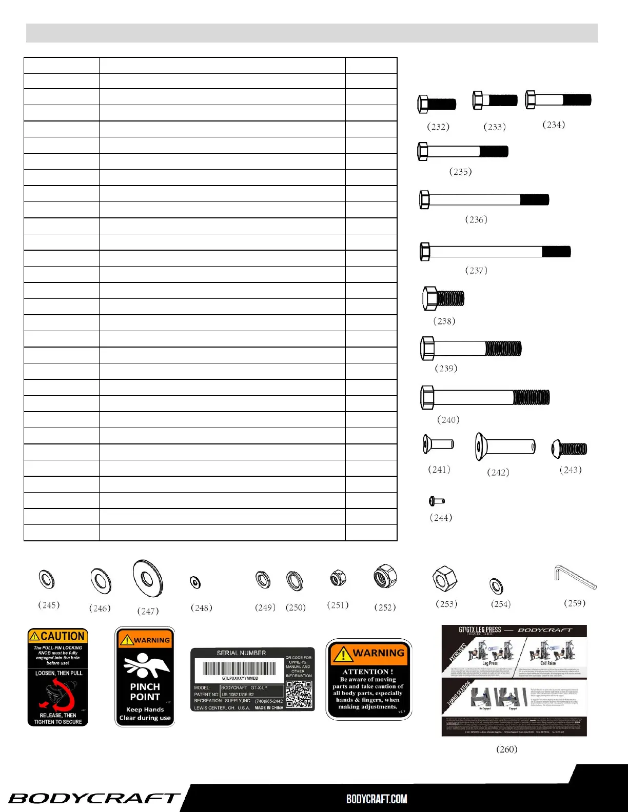 Detailed Parts List, GT-LP (Leg Press) 2 of 2