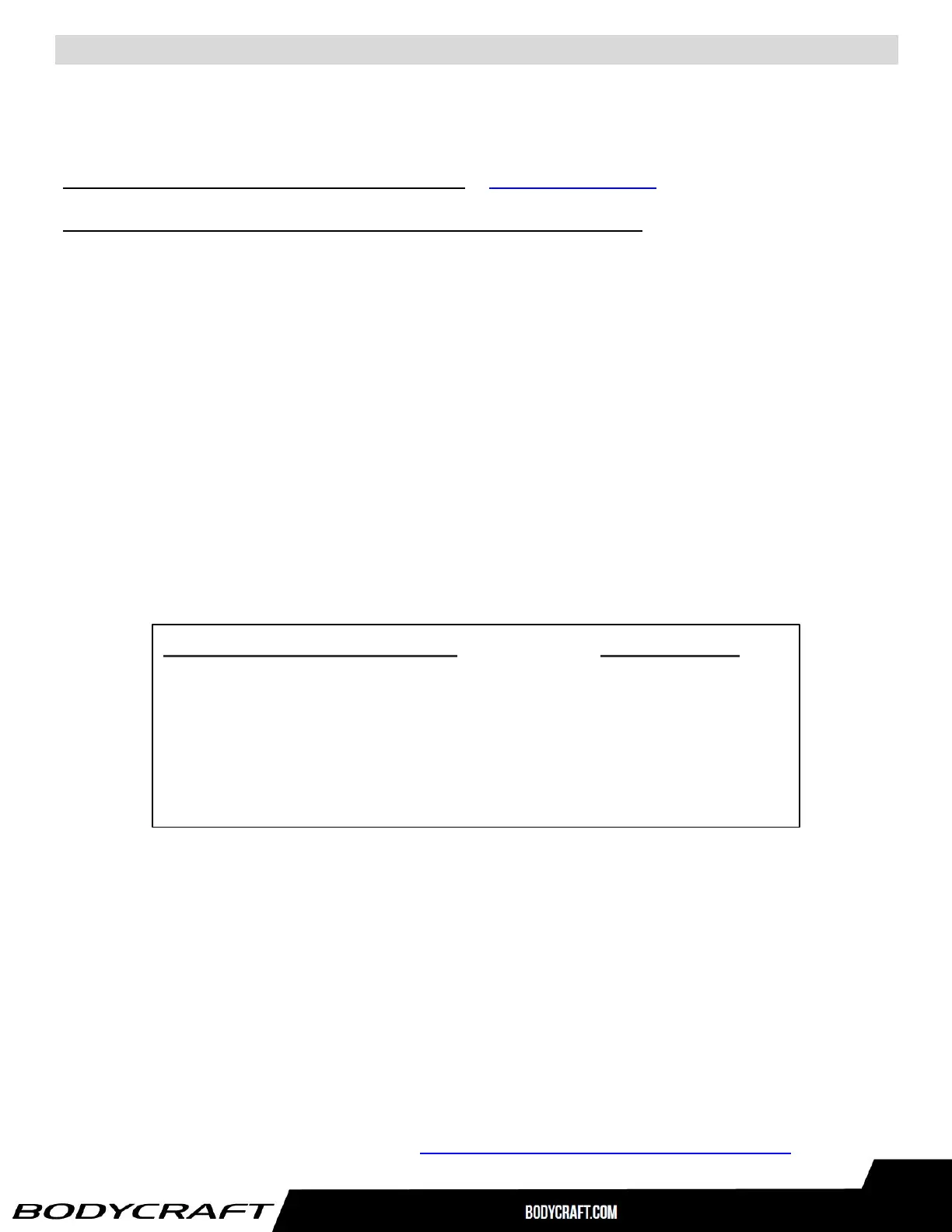Register your product within 30 days of purchase at www.bodycraft.com or call 800-990-5556