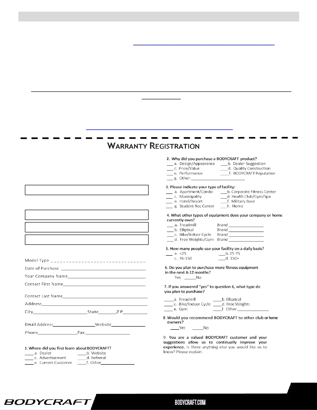 Thank you for purchasing a BODYCRAFT product. To validate the product warranty the fast and