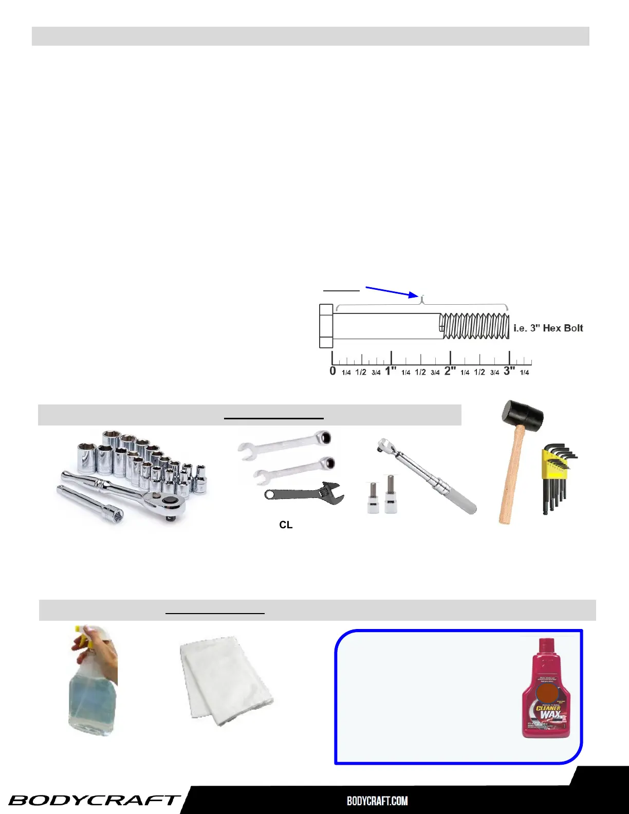 THE FOLLOWING TOOLS ARE RECOMMENDED FOR EASIER ASSEMBLY:
