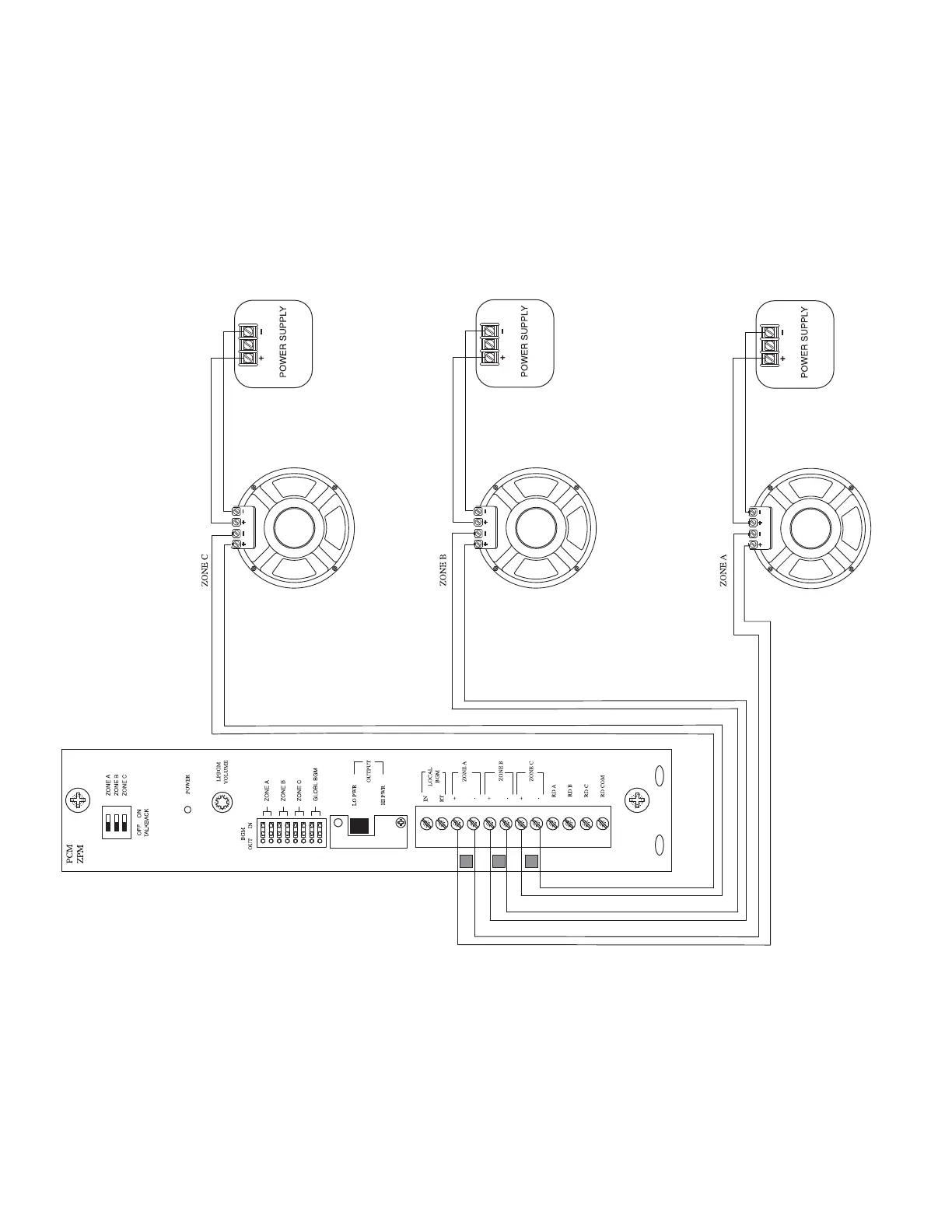 SETUP FOR CONFIGURATION 9: 3-ZONE / ONE-WAY PAGING / LOW-POWER SYSTEM / SELF-AMPLIFIED SPEAKERS