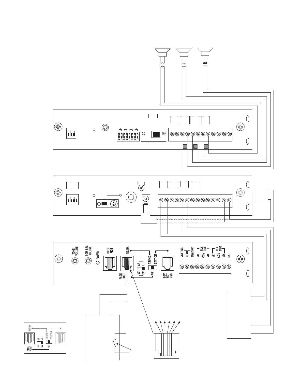 SETUP FOR CONFIGURATION 1: PAGE PORT CONTACT CLOSURE / 3-ZONE / ONE-WAY PAGING / SINGLE AMPLIFIER / 25 & 70V AC SPEAKERS