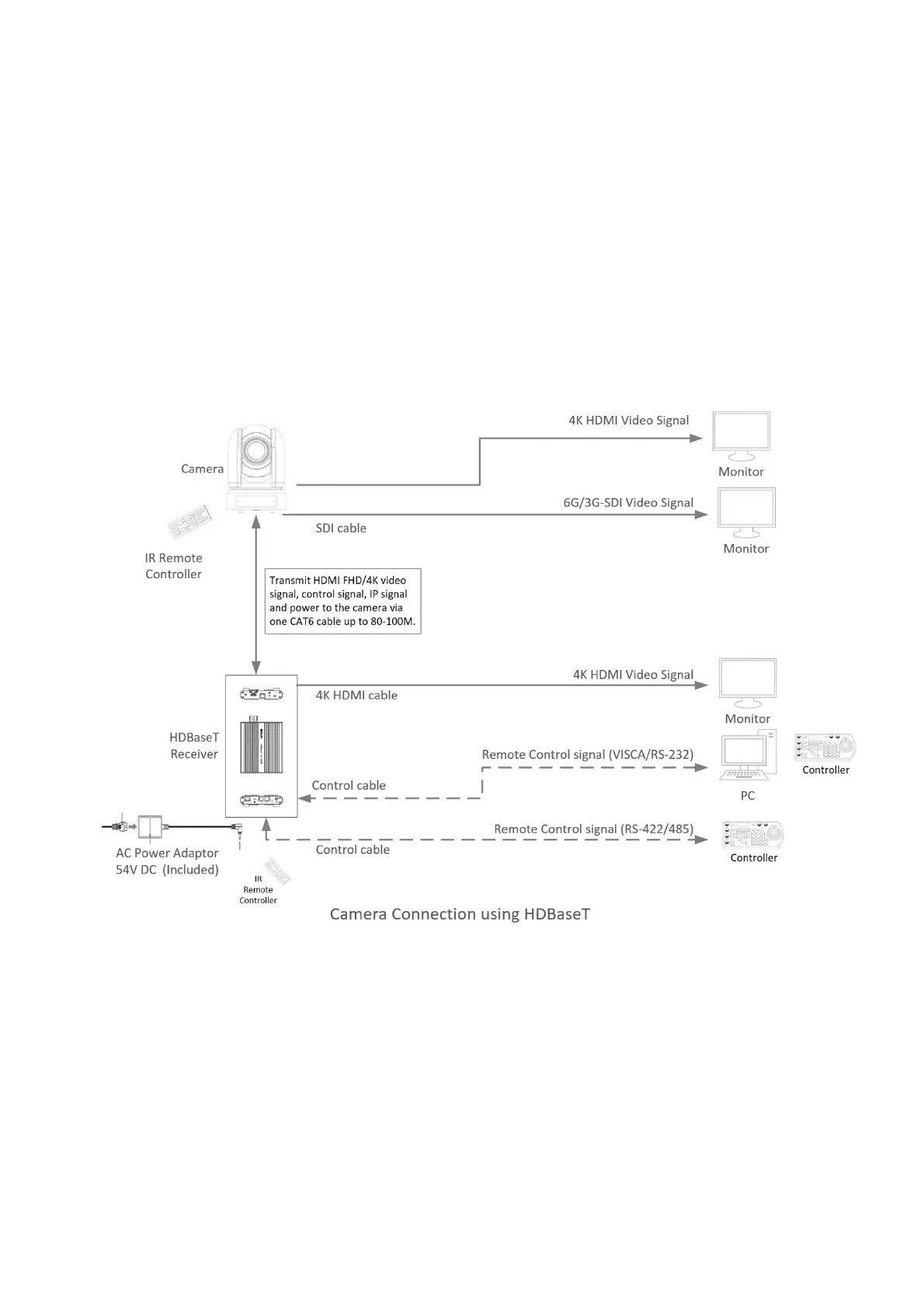 4. Power on the HDBaseT Receiver, the camera will be powered on by the receiver, video will display on