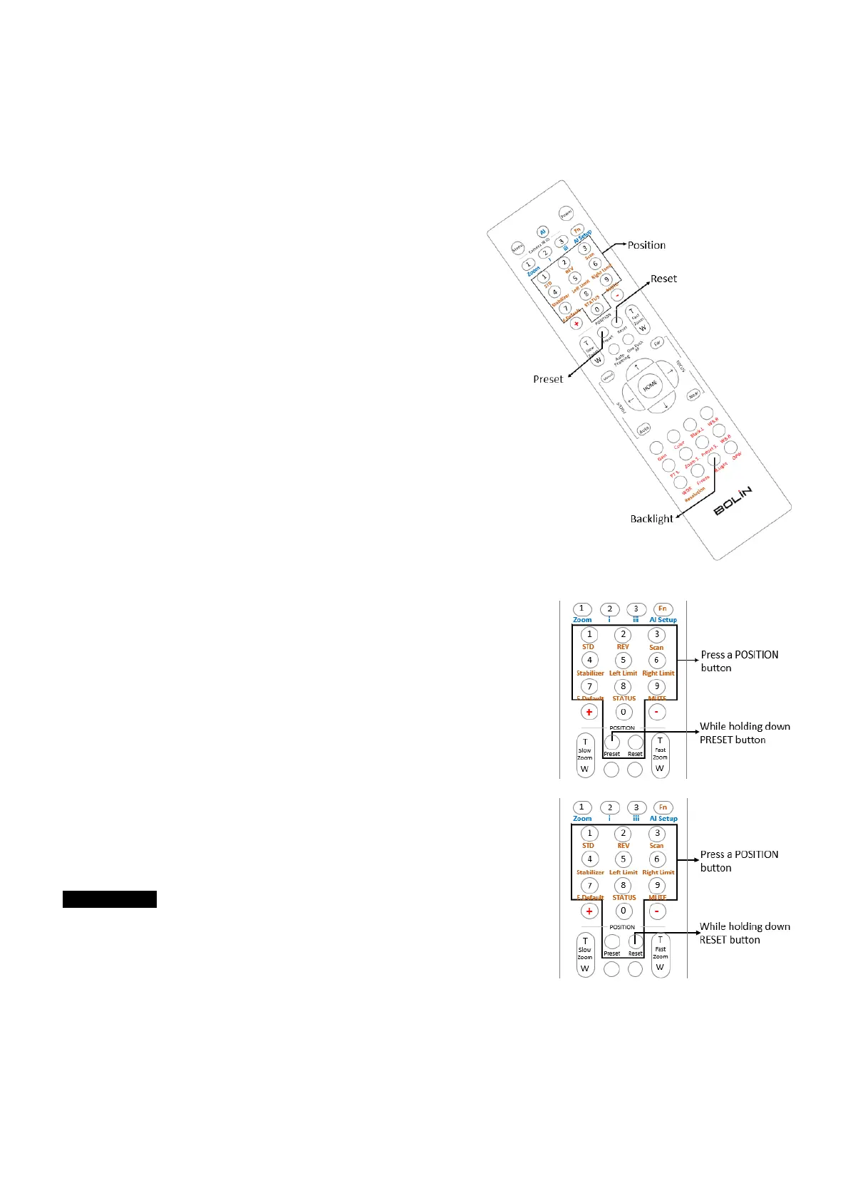 While holding down the PRESET button, press any of the POSITION