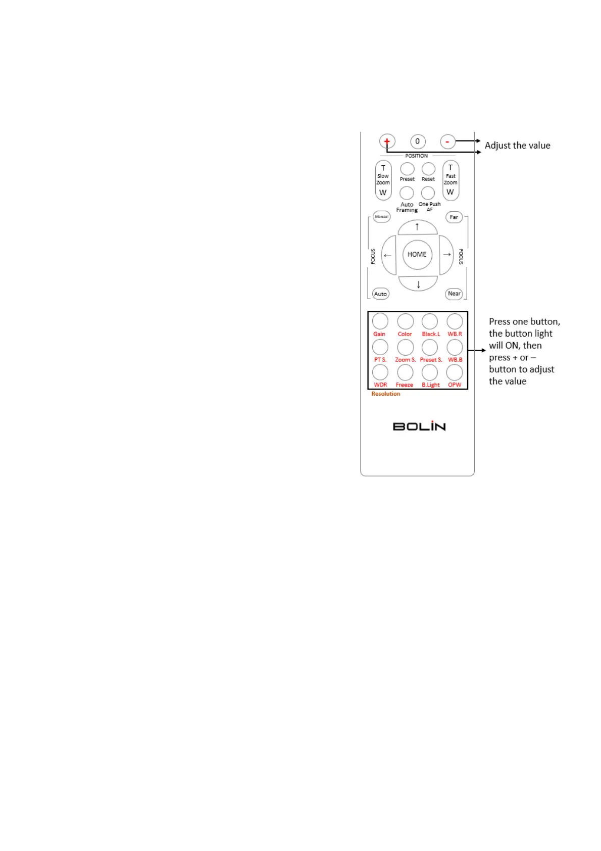Press WB.R button, the WB.R button light will on, then press “+”