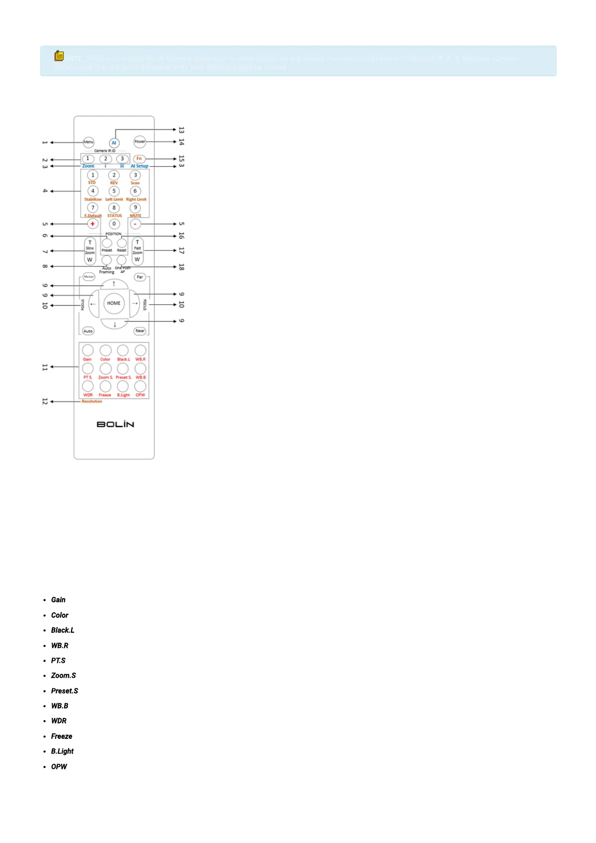 Buttons 1-9- Used to set & recall corresponding presets. (See #6 to set a preset and#16 to erase a preset)