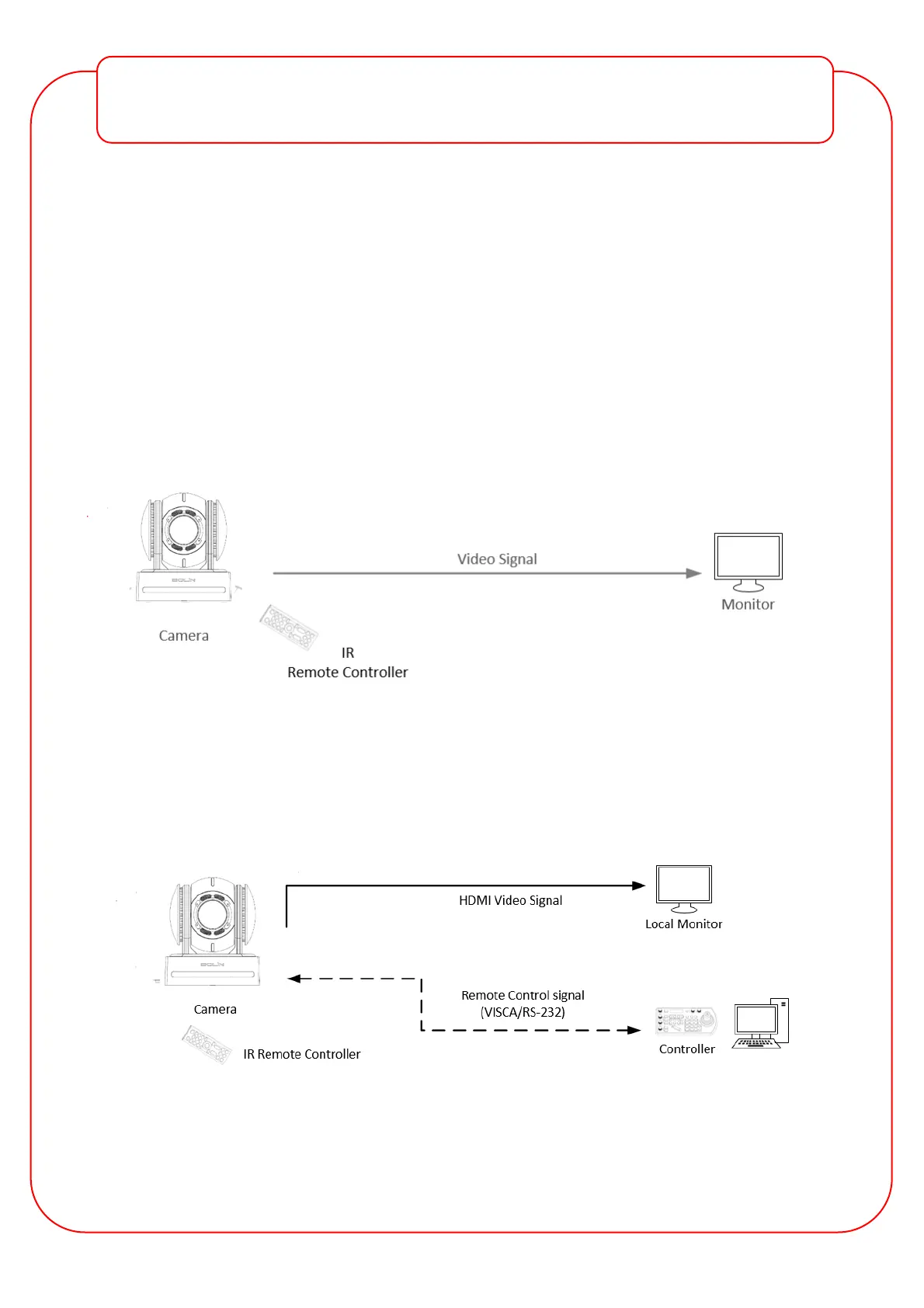 There are multiple ways to control the camera using included accessory and /or third-party equipment.