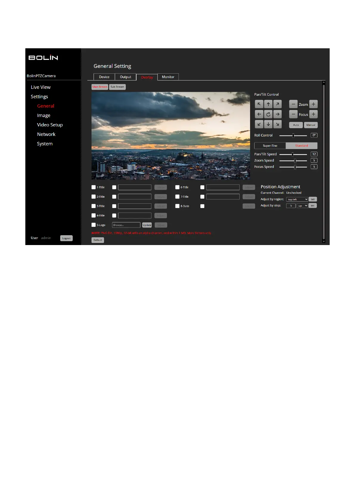 To reposition the text within the live feed image, make use of the ‘position adjustment’ section situated3.