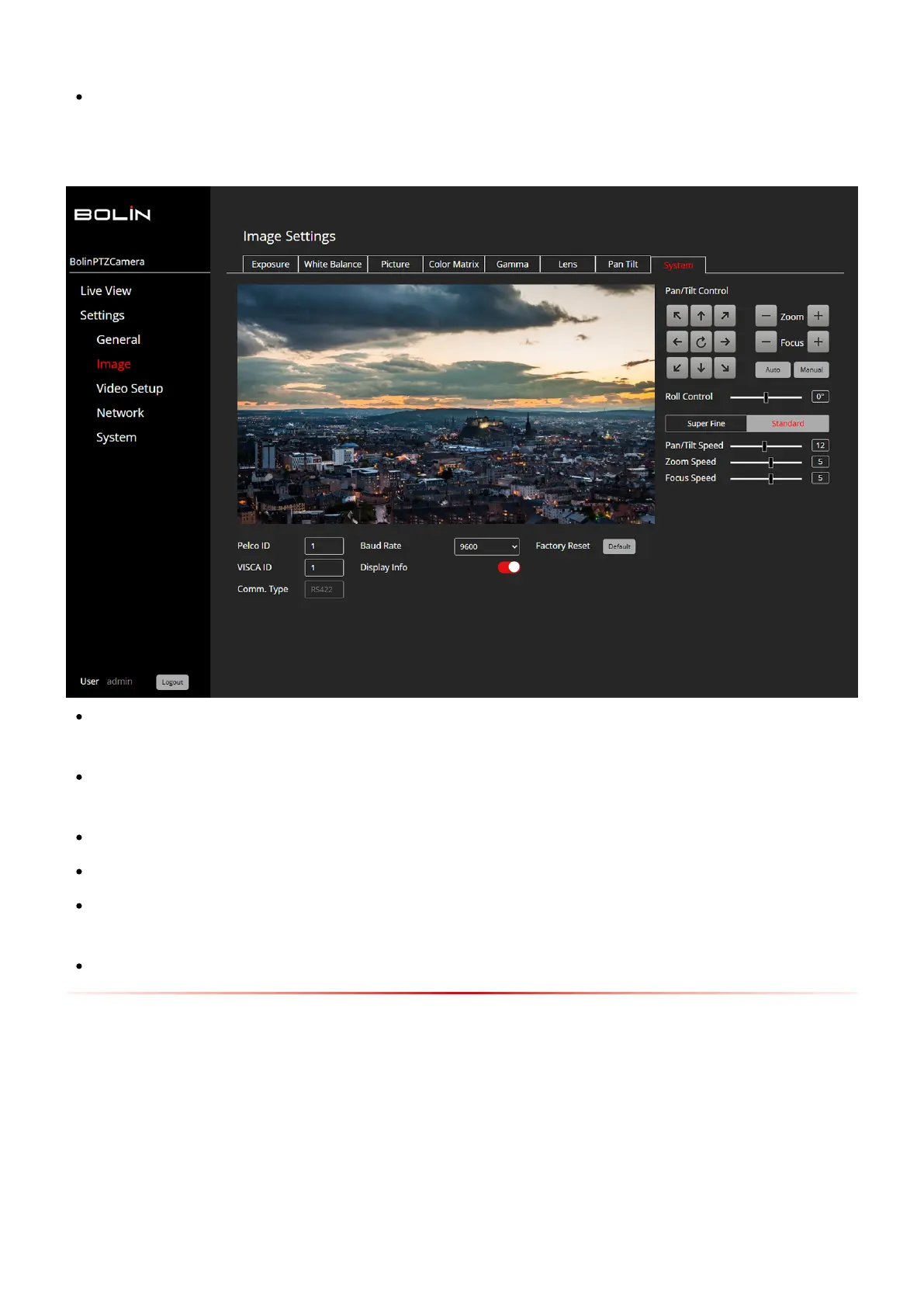 Pelco ID: When utilizing RS485 (PELCO P/D) control, assign the Camera ID to the specific address you