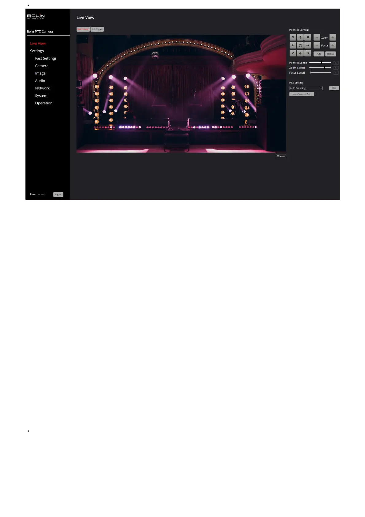 1. Access the Live View Page: Open the web GUI for your PTZ camera and navigate to the Live View page.