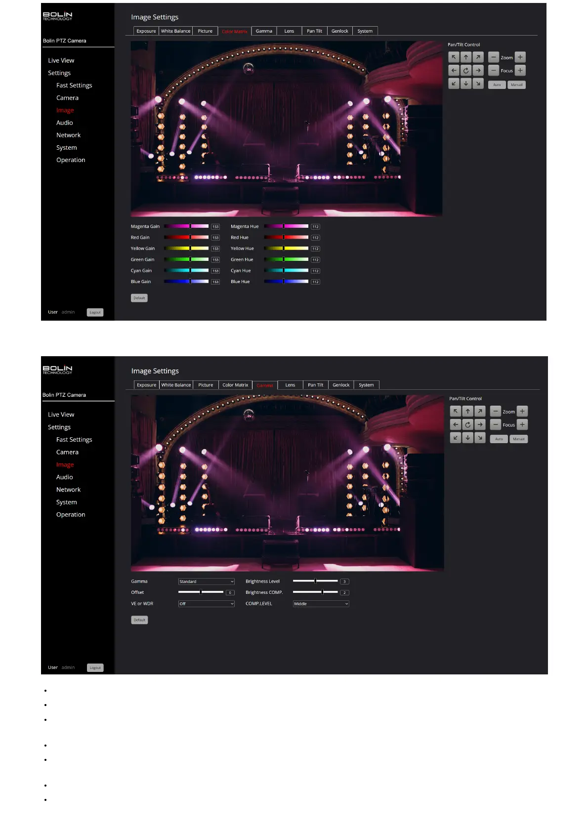 Pattern: This option allows the user to select a gamma curve from 512 patterns stored in the camera. The pattern can be specied using the PATTERN and