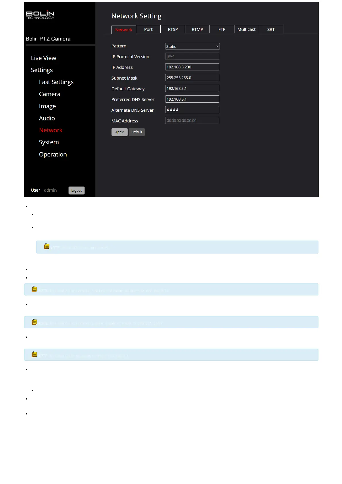 Default Gateway:When conguring the device, the default gateway IP address should be set to the IP address of the router that serves as the gateway for the