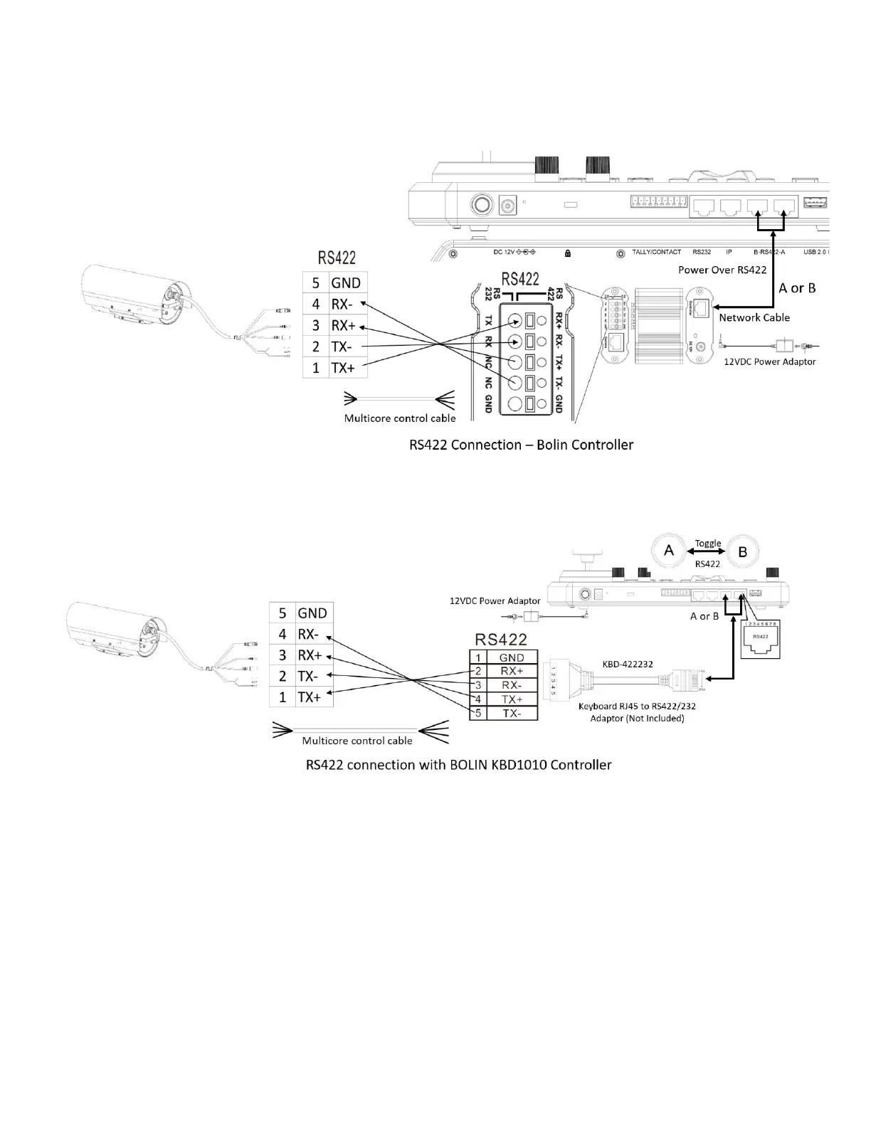 1. How to make 1 to 1 RS422 connection with Bolin KBD-1010 controller as below or refer to Bolin KBD-1010 user guide.