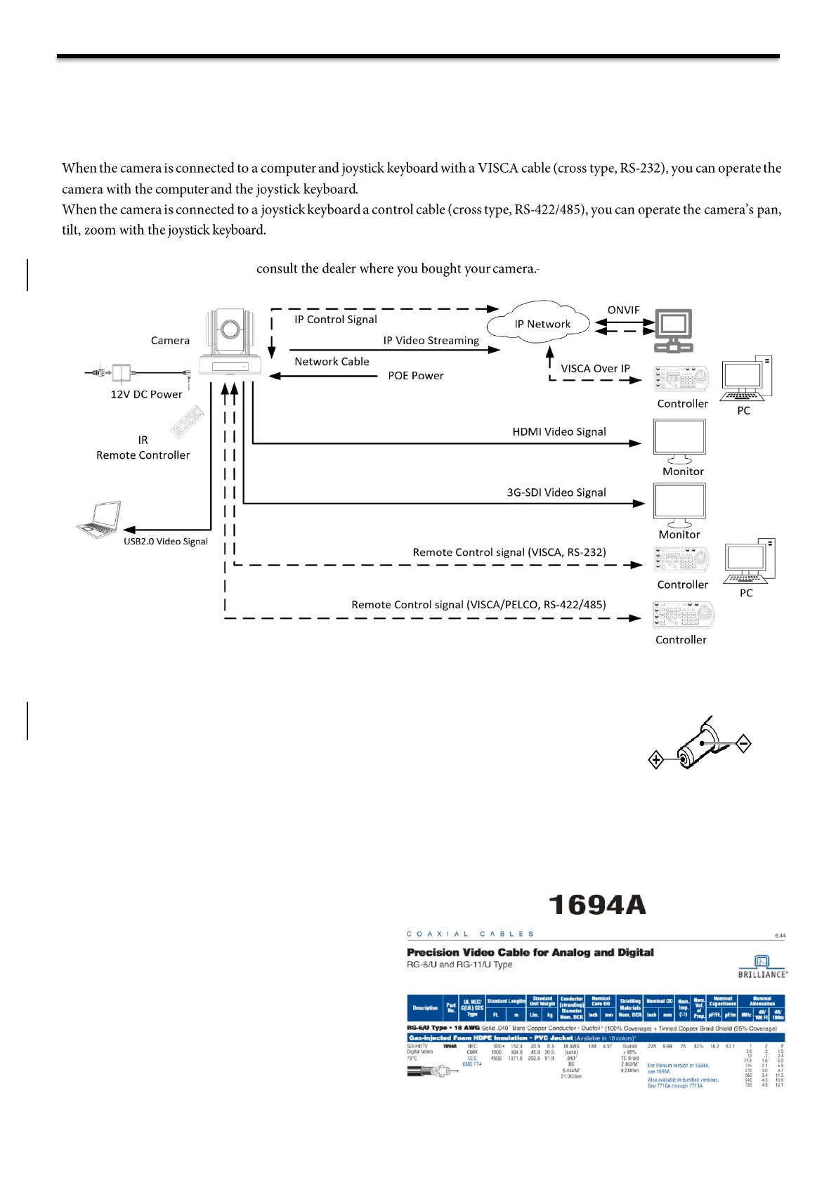 In this connection configuration, HDMI cable, SDI video cable, data cable, Network cable is required. To obtain these third-