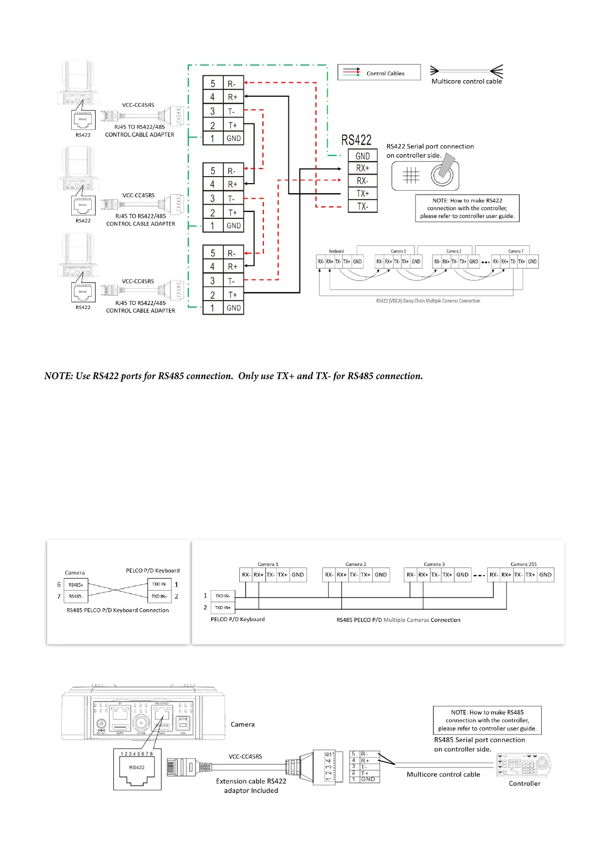 • Use extension cables included RJ45 to RS422 Phoenix connecter adaptor to make RS485 connection for your control device.