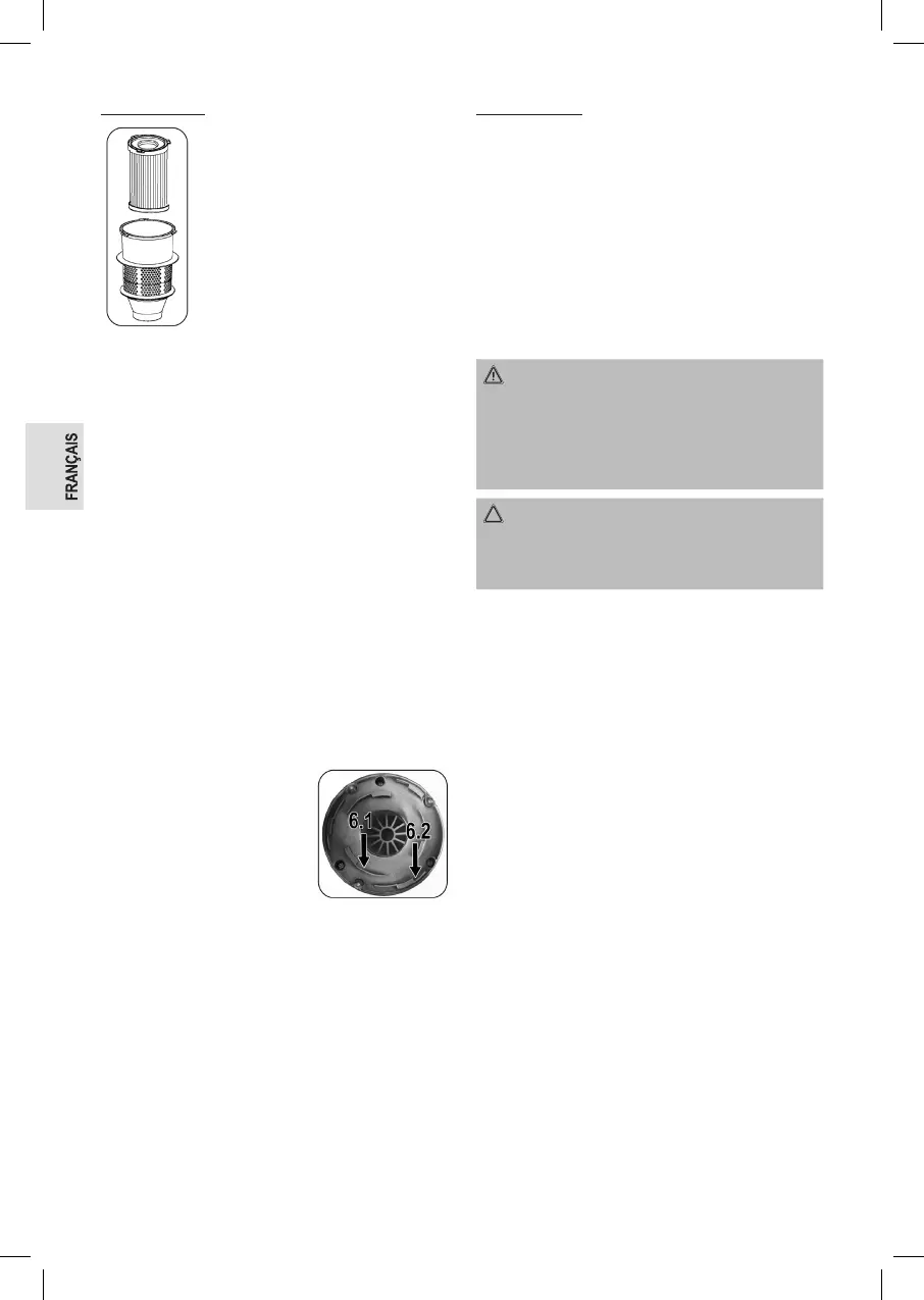 • Pour le nettoyage des filtres, veuillez lire le chapitre