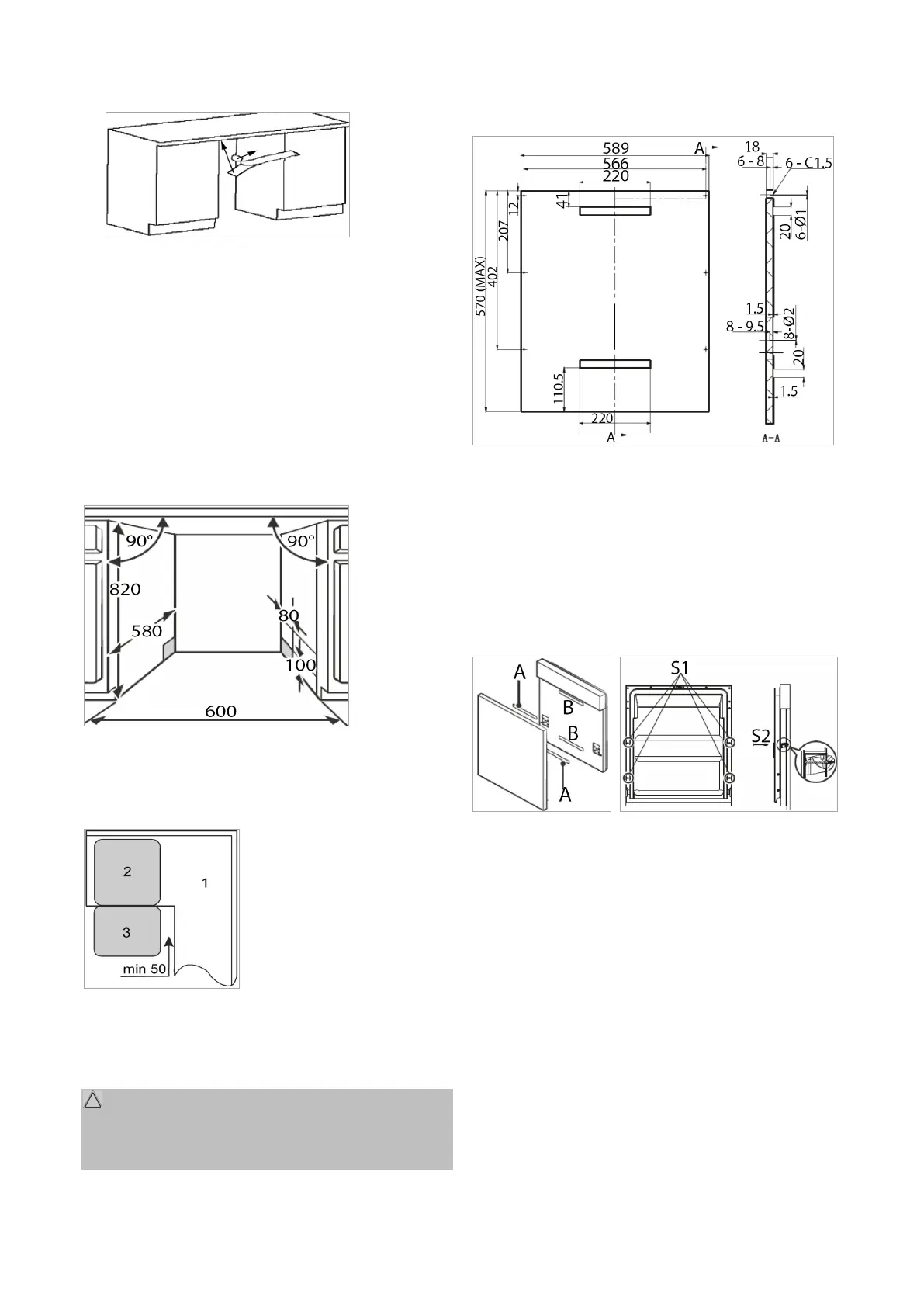 Wenn das Gerät in der Ecke des Unterbaus montiert