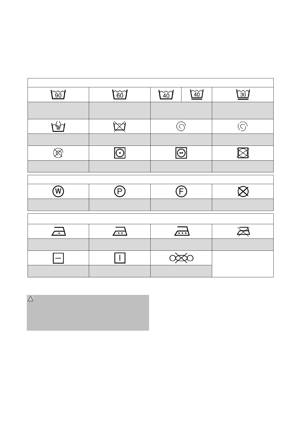 nen Symbole zum Waschen, Bügeln, Trocknen und Reinigen des jeweiligen Textils auf dem Pflegeetikett im