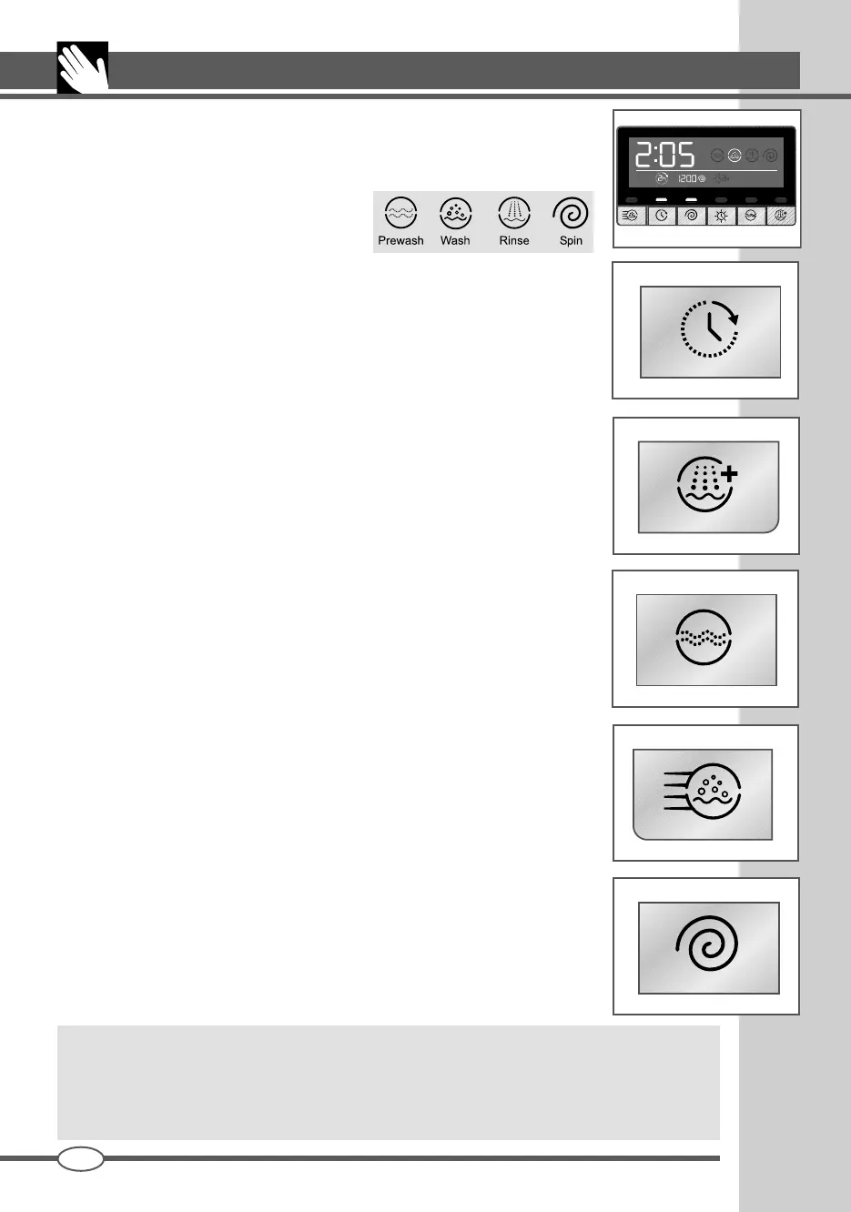 ing on the wash program selected and the type of fabric. The LCD display will show