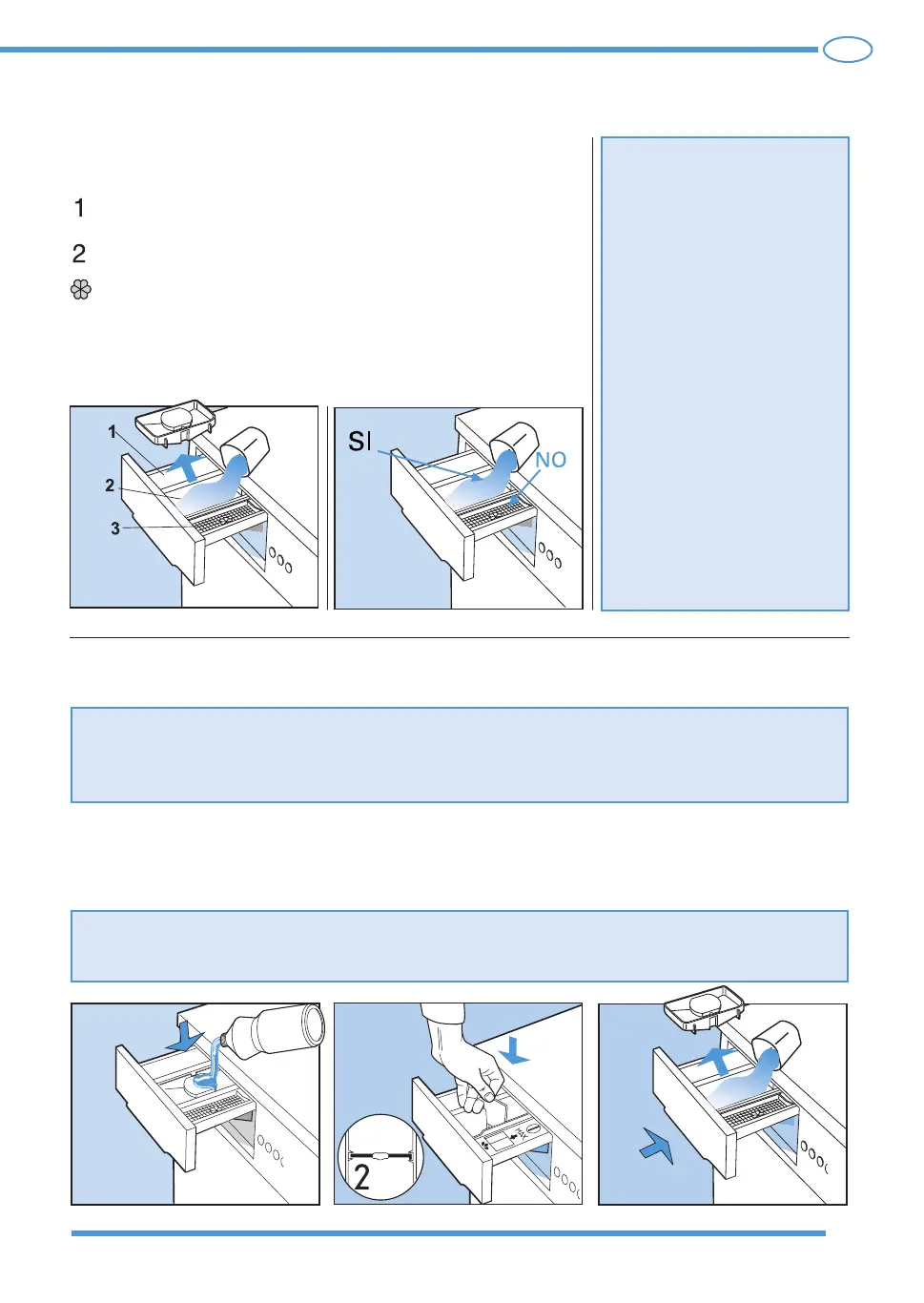 Ricordarsi di rimuovere il contenitore o la paratia detersivo liquido quando si usa il sapone in polvere.