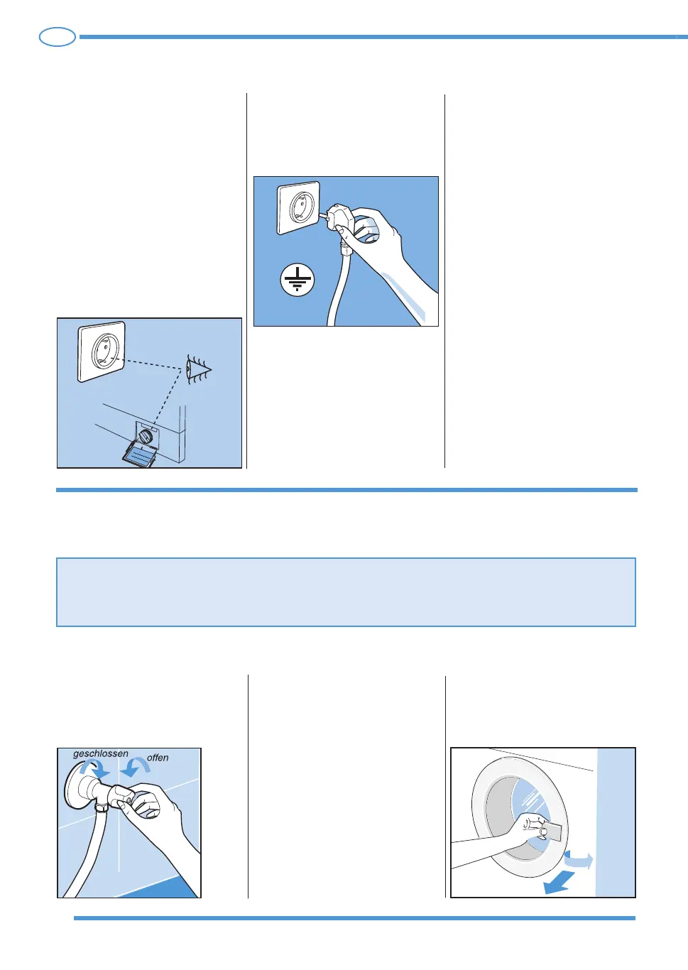 Achtung: Bevor erstmals mit der Maschine gewaschen wird, einen kurzen Waschgang ohne