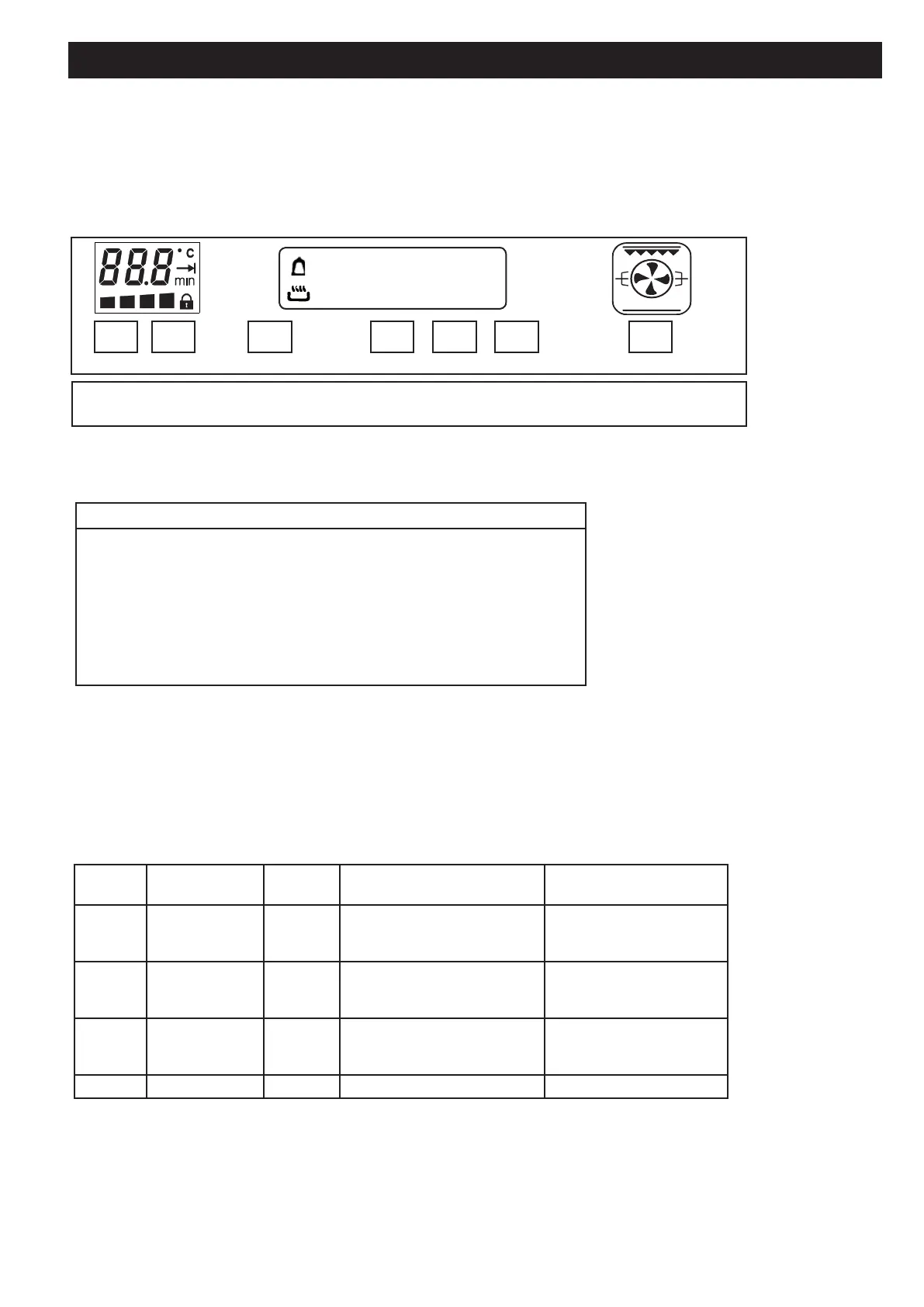 1 0/I Turns on the oven and activates the -/+ key for cooking method selection