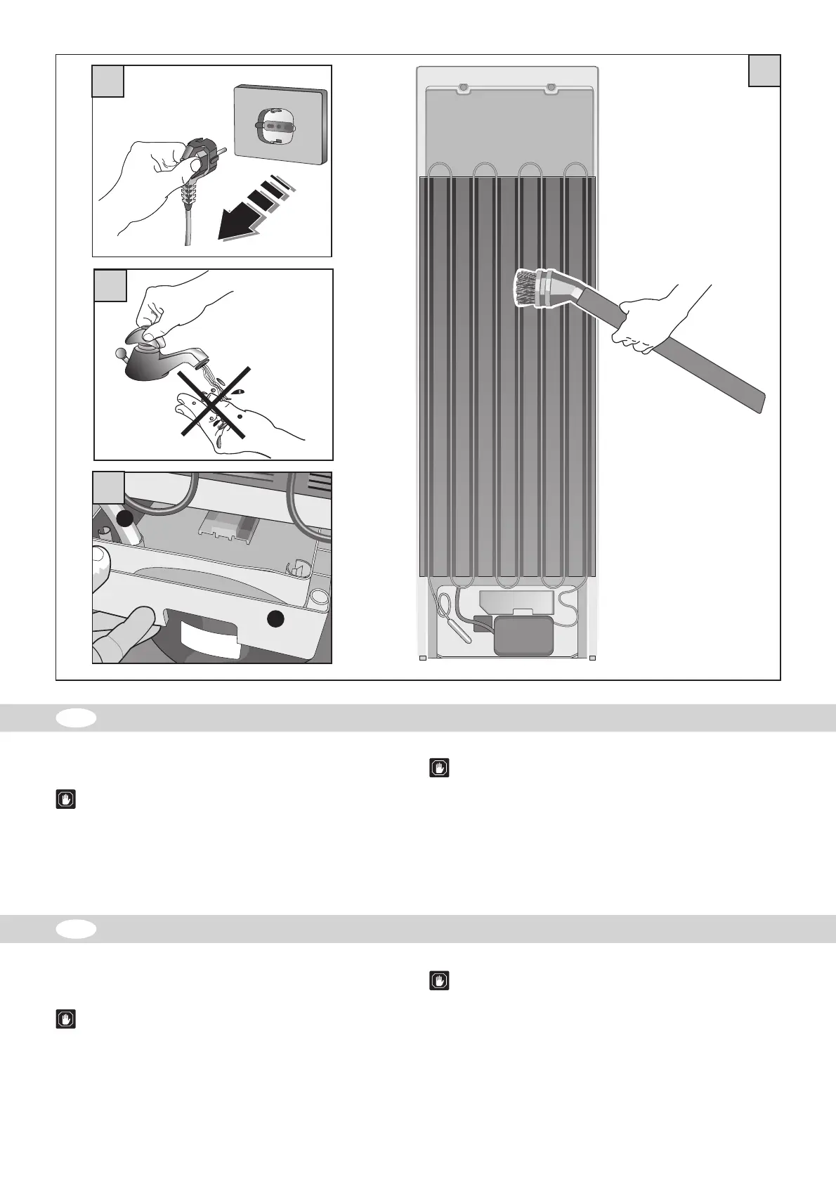 - Empty the compartments. Disconnect the appliance from the mains electricity supply.