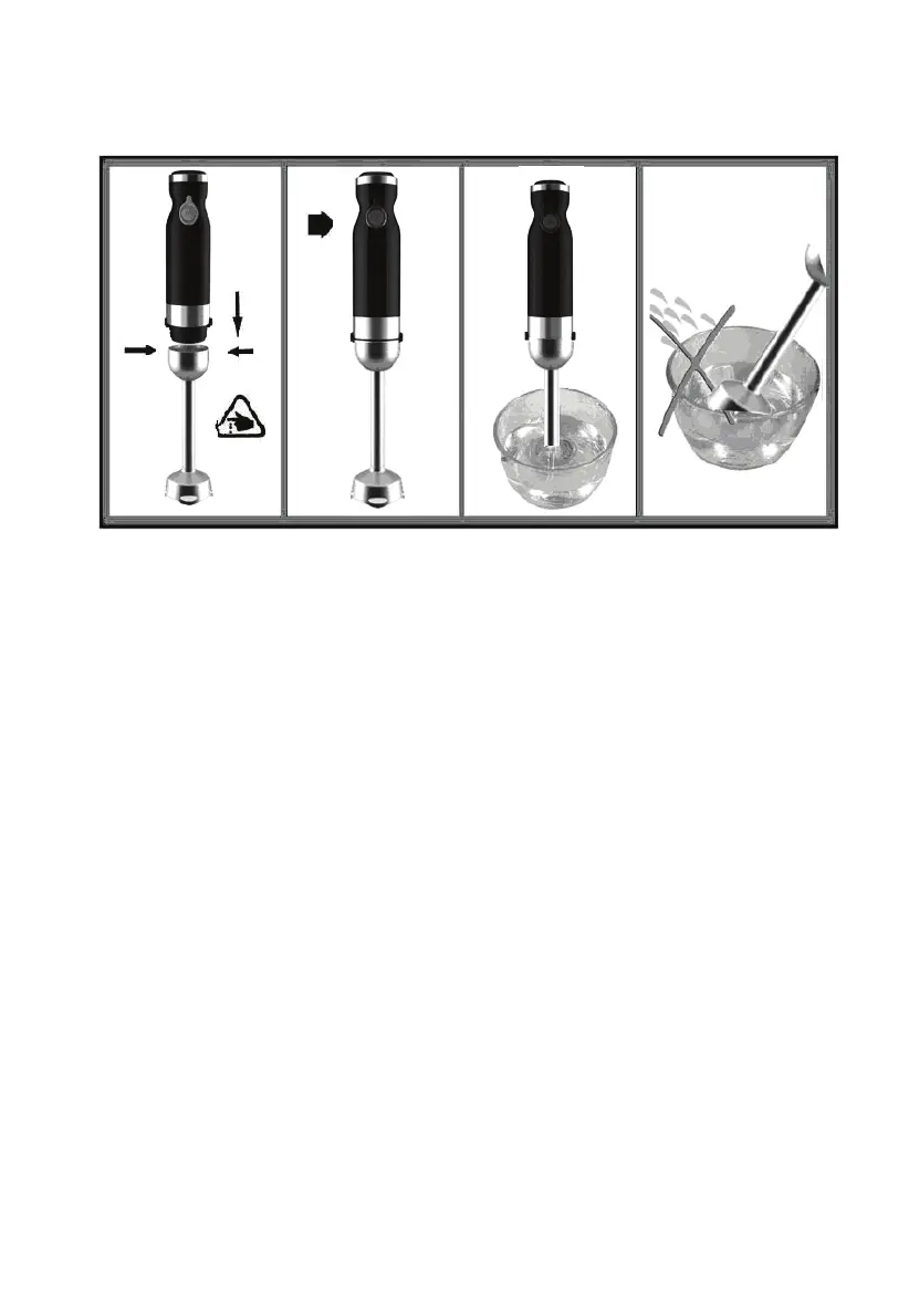 2.  Introduce the hand blender in the vessel. Check the speed switch