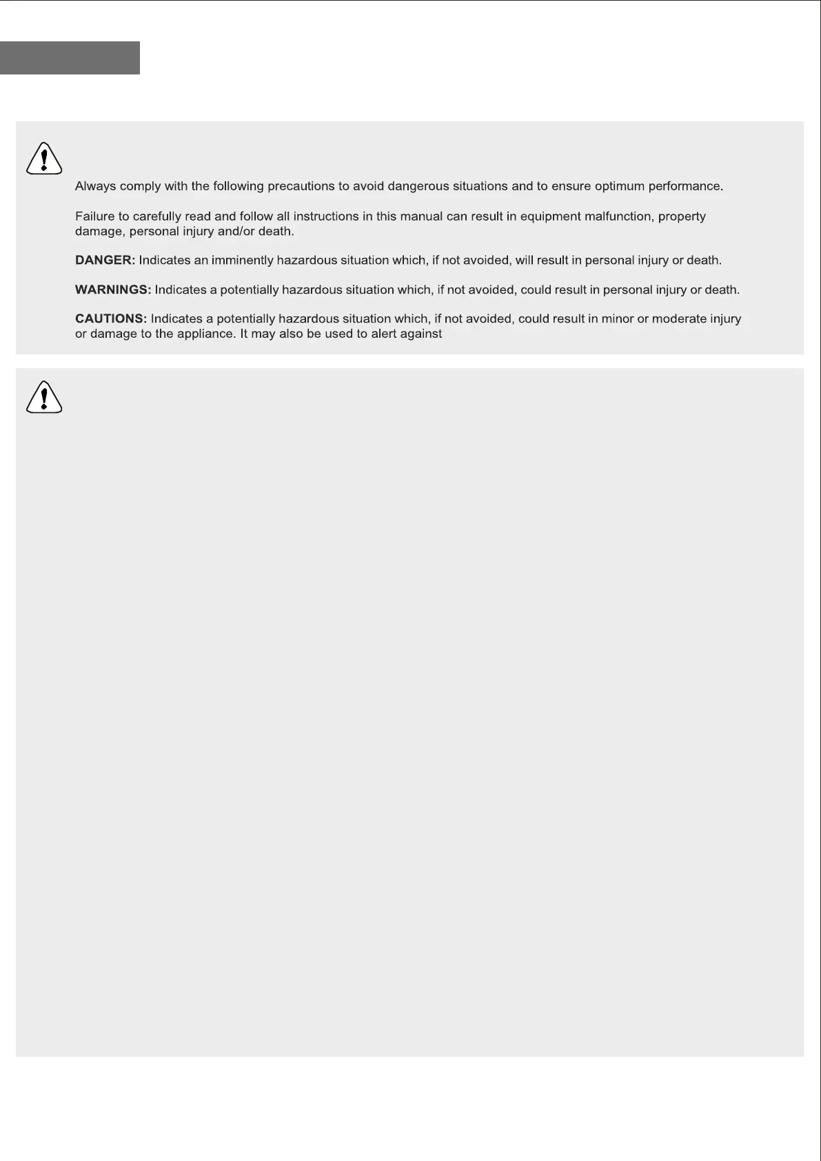 malfunction, property damage, personal injury and/or death.