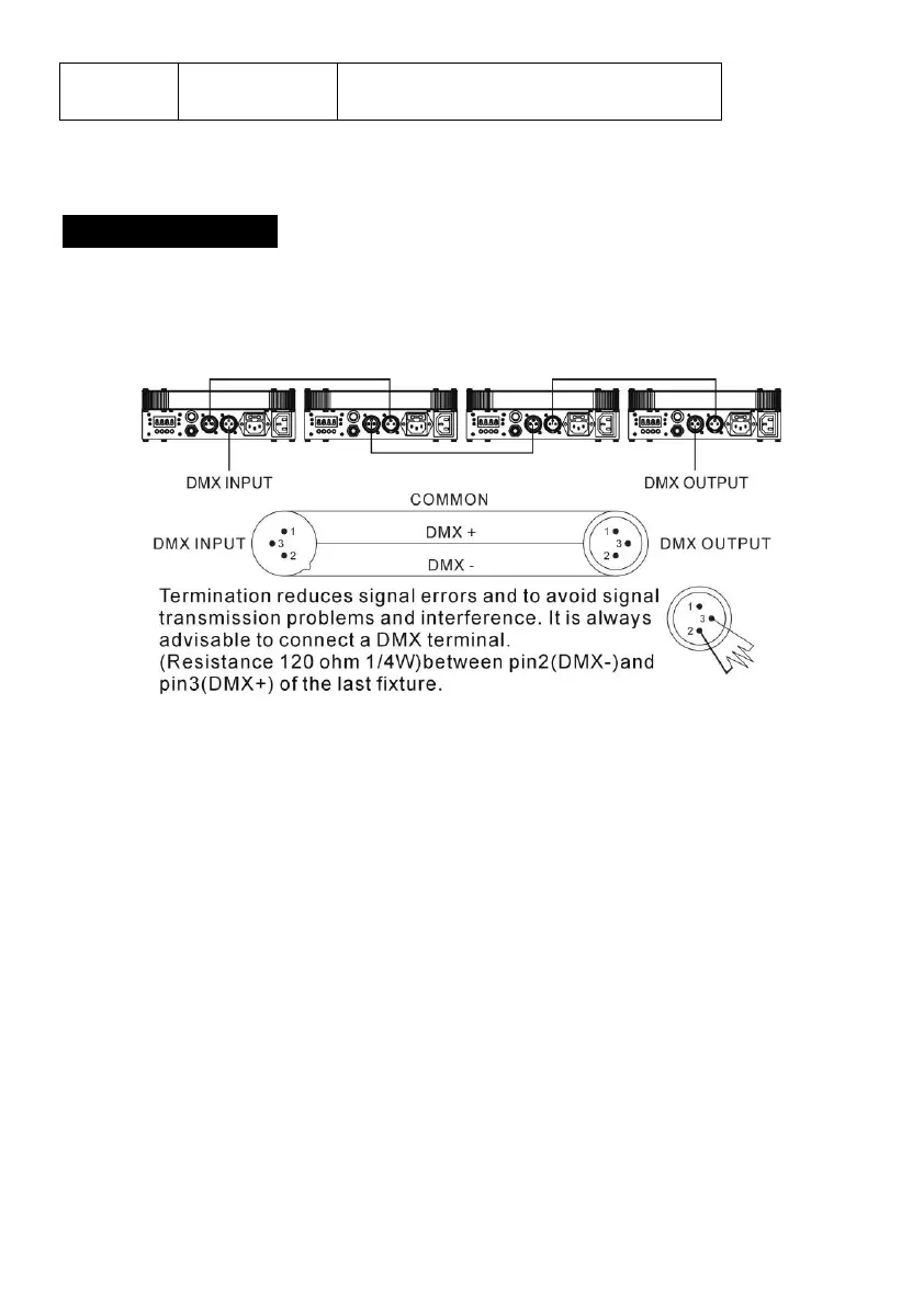 At last fixture, the DMX cable has to be terminated with a terminator to