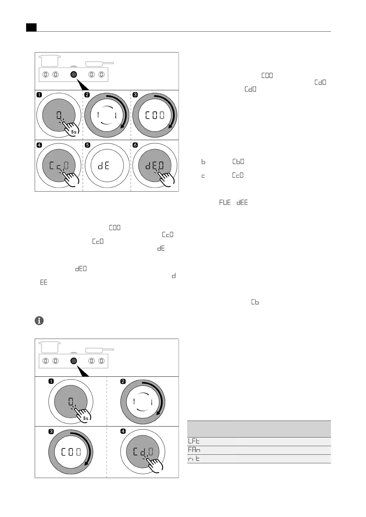 kookveldafzuiging resp. kookveld rechts) weer te geven