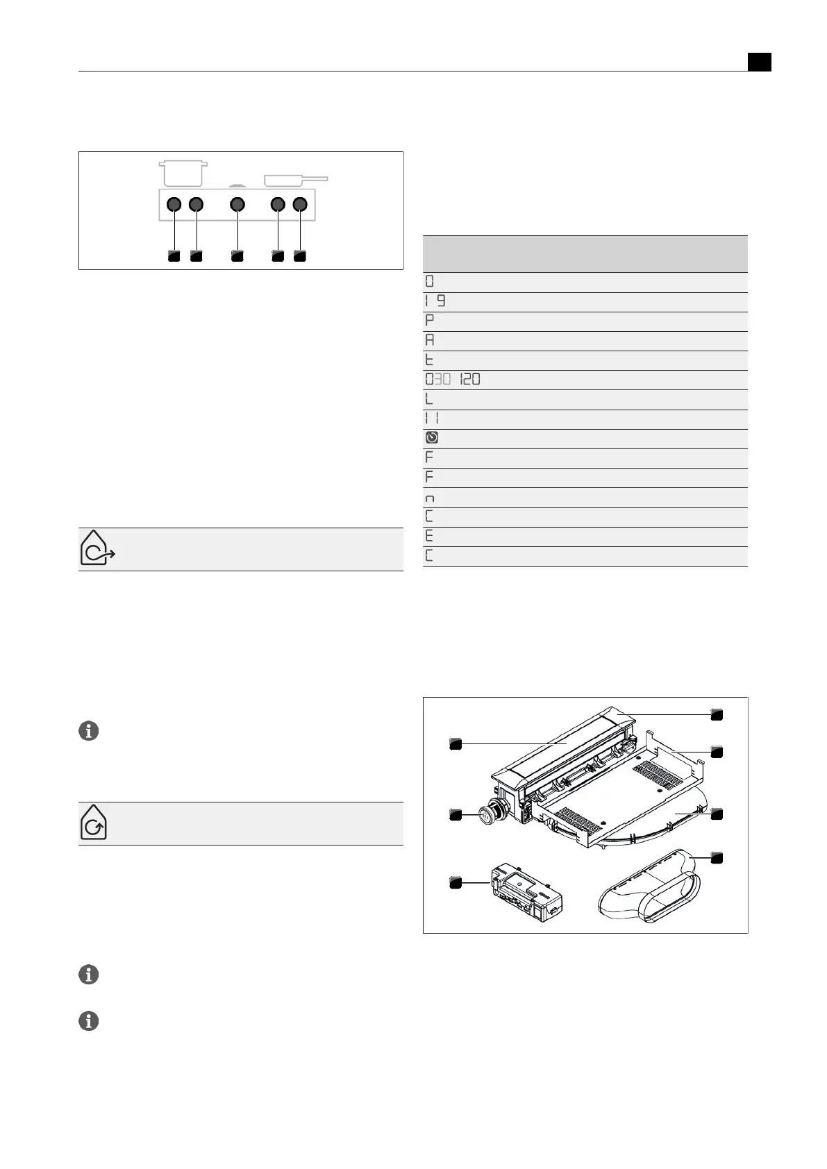Op het display van de bedieningsknop van de kookveldafzuiging
