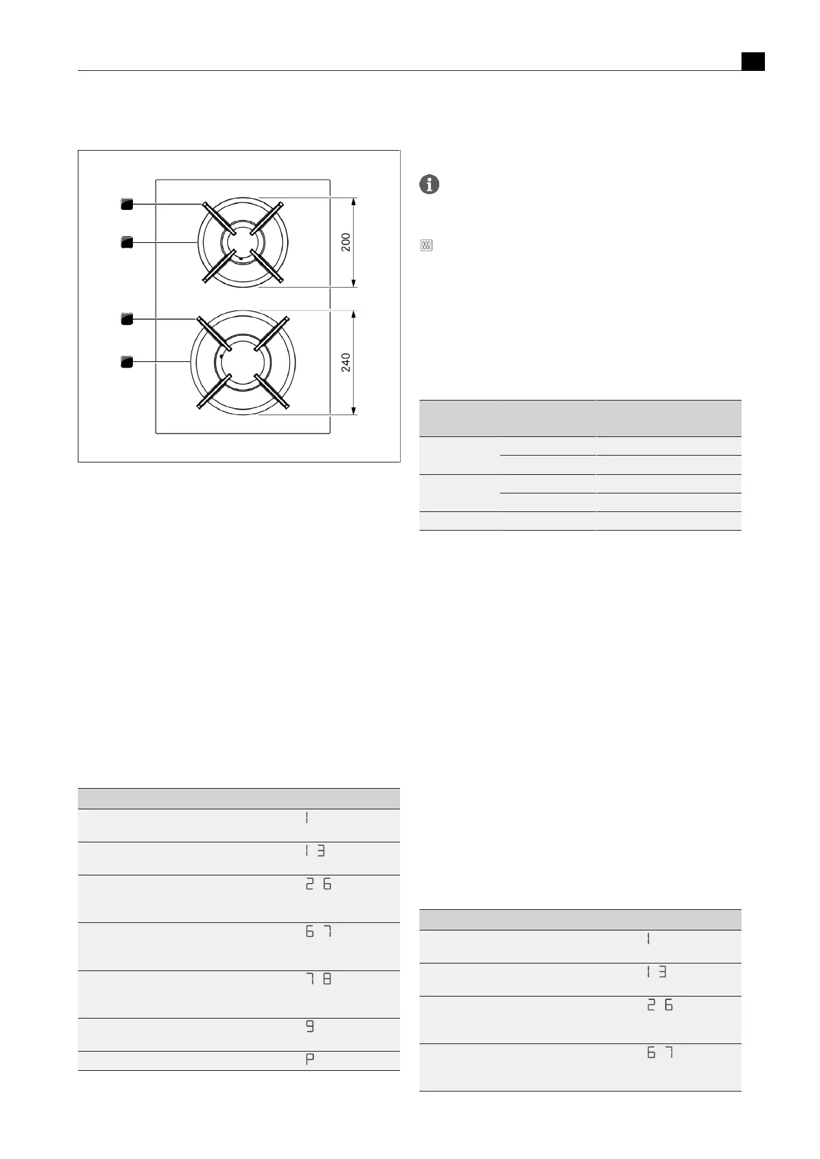 Opbouw gaskookveld PKG3 en grootte van de kookzones