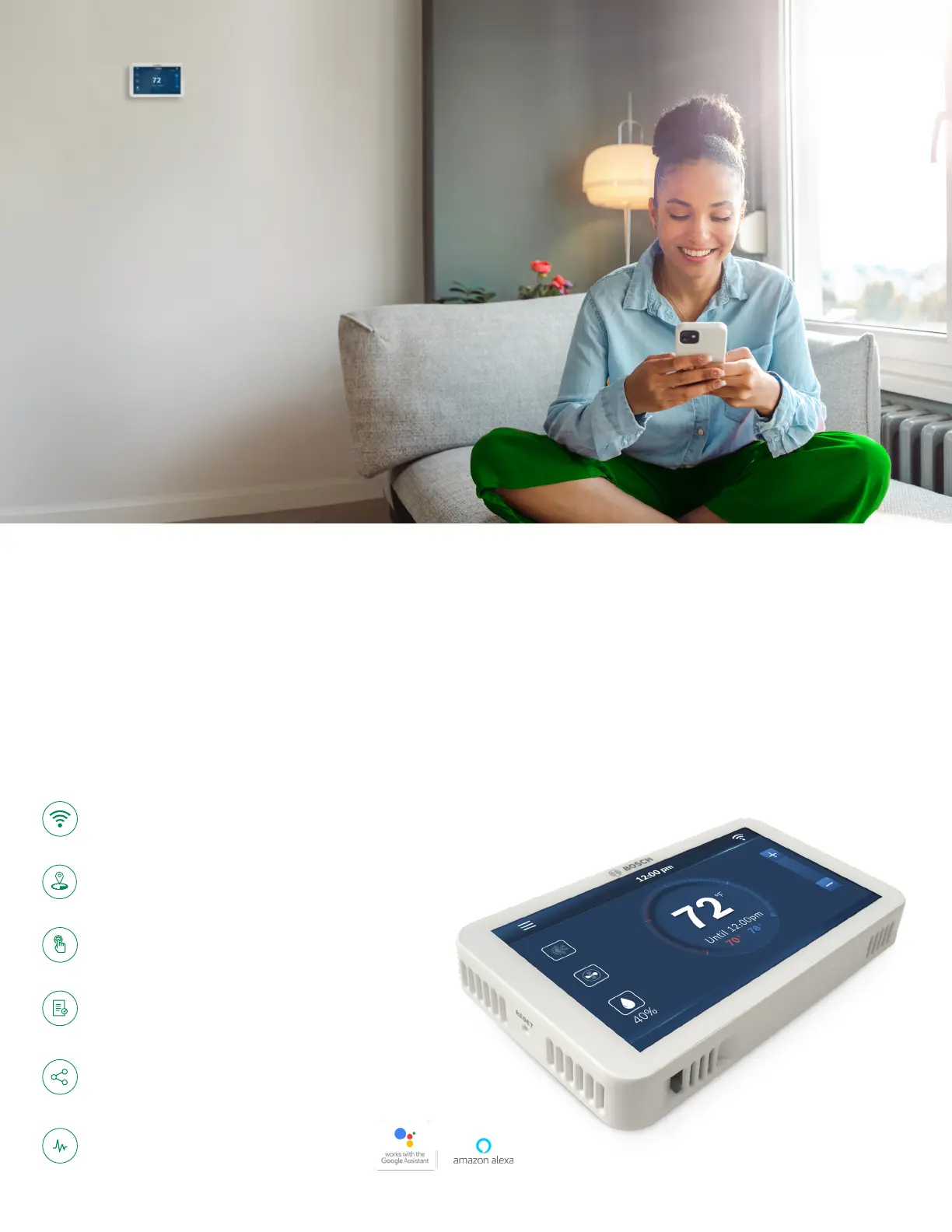 full color 5" touchscreen display, the Bosch EasyAir app or your voice with the Bosch EasyAir Alexa Smart