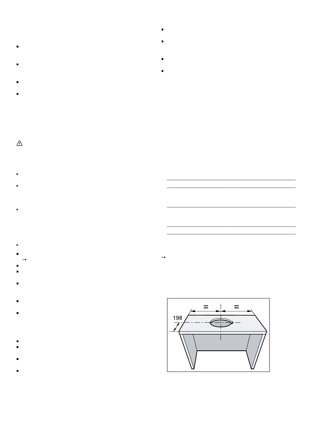 Note: Note the furniture manufacturer's specifications