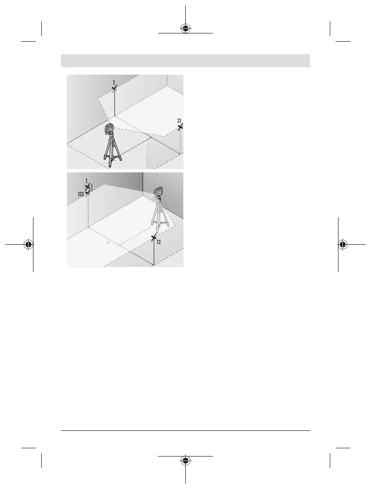 under) slik at midten på laserlinjen nøyaktig treffer det tidligere markerte punktet Ⅱ