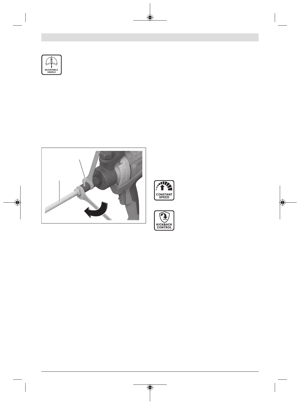 Povoľte skrutku (9), otočte prídavnú rukoväť