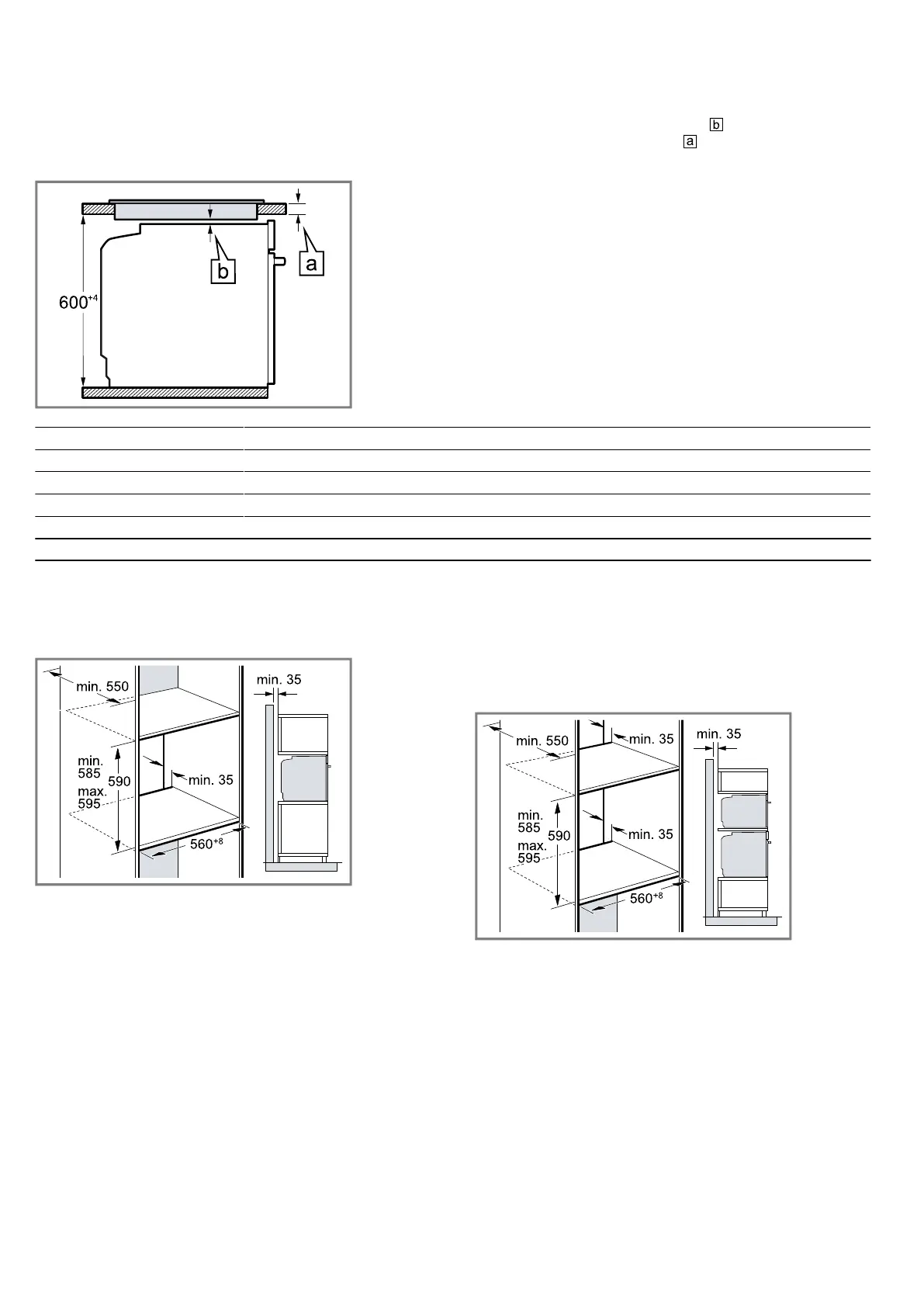 another appliance. Observe the installation dimensions
