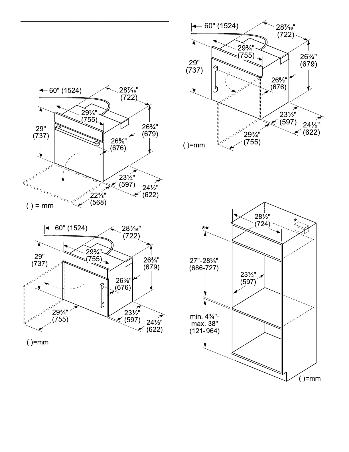 Dimensions pour les fours simples de 30po fr-ca