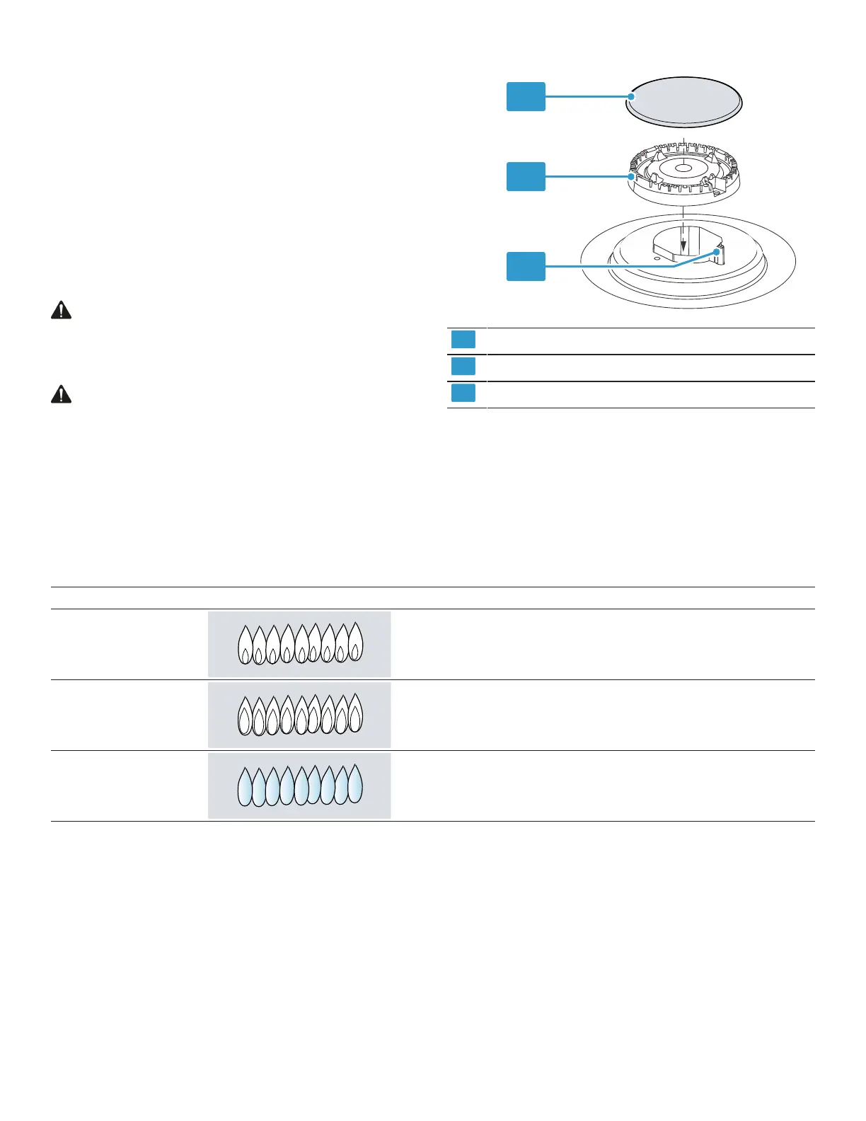 Remarque:Laisser l'appareil fonctionner pendant 4 à 5 minutes avant d'évaluer la flamme. Des stries jaunes sont