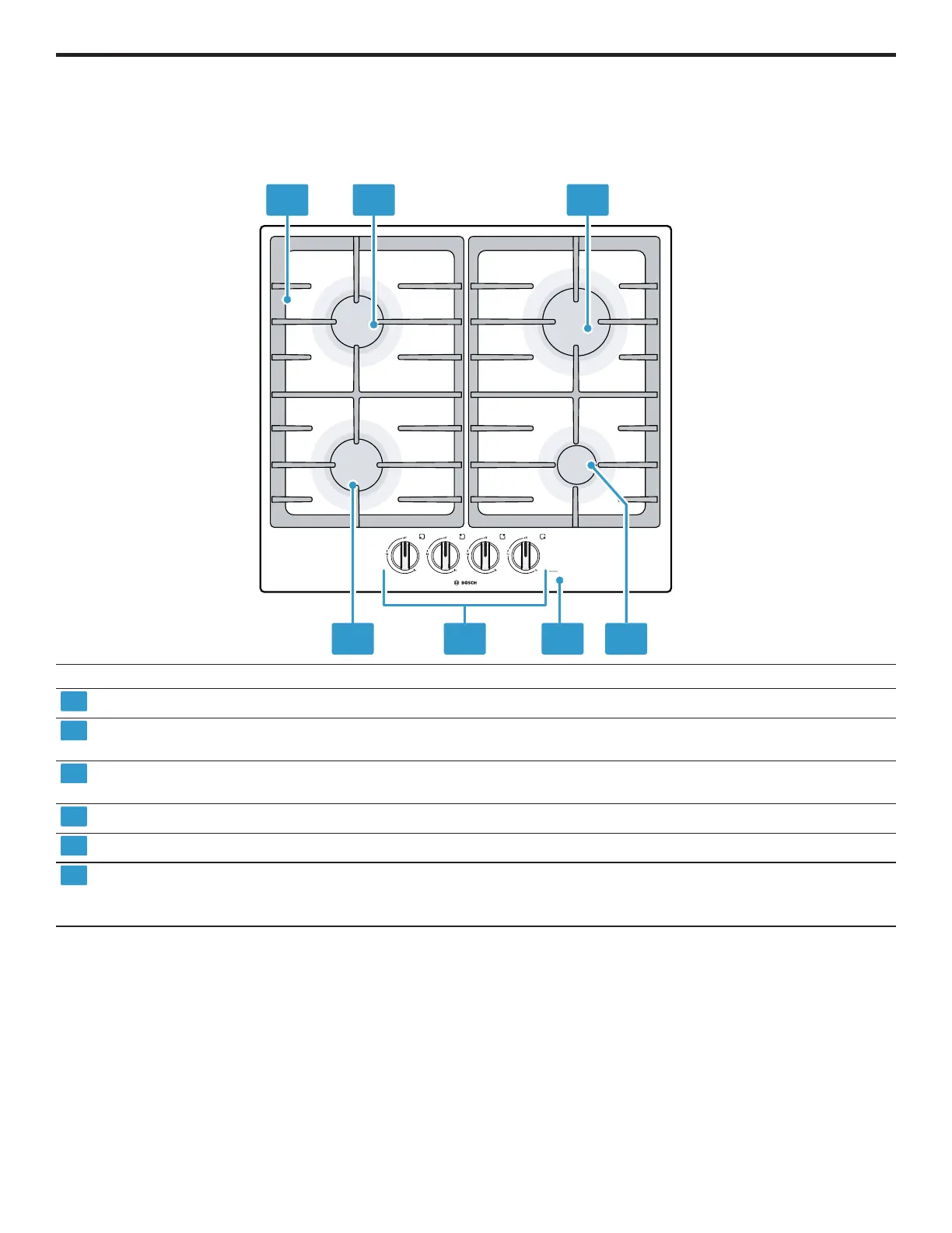 Boutons de commande Contrôlez le brûleur indiqué à côté du bouton de commande.