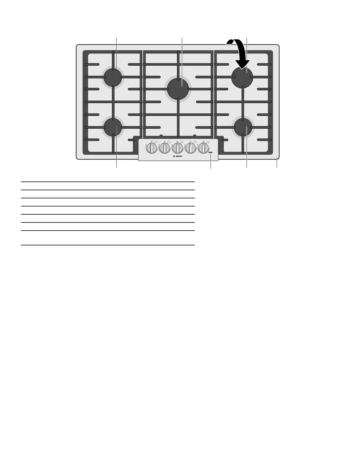 5 Right front burner (9,300 BTU/ 2.72 kW)
