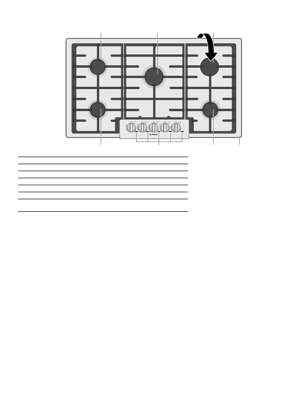 5 Right front burner (12,000 BTU/ 3.52 kW)
