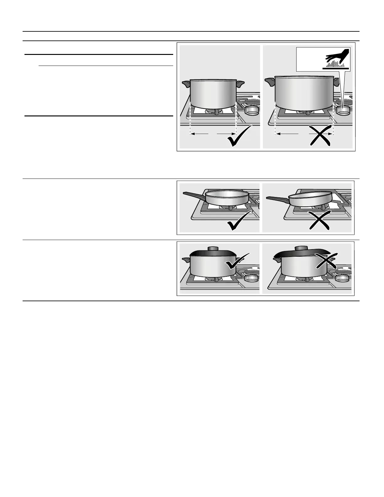 ▯ Pans must sit level on the cooktop grate without