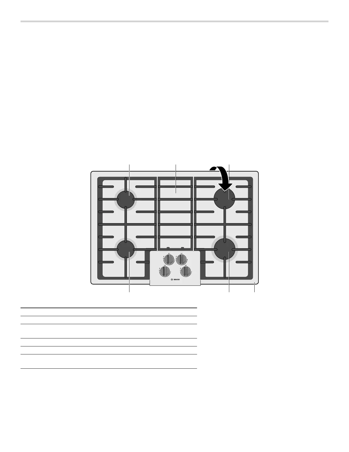 3 Brûleur arrière droit (5 500 BTU /1,61 kW), *fonction