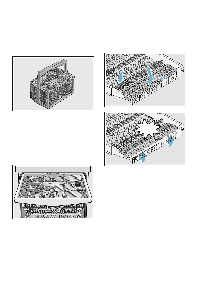 tips face down, in the cutlery basket *.
