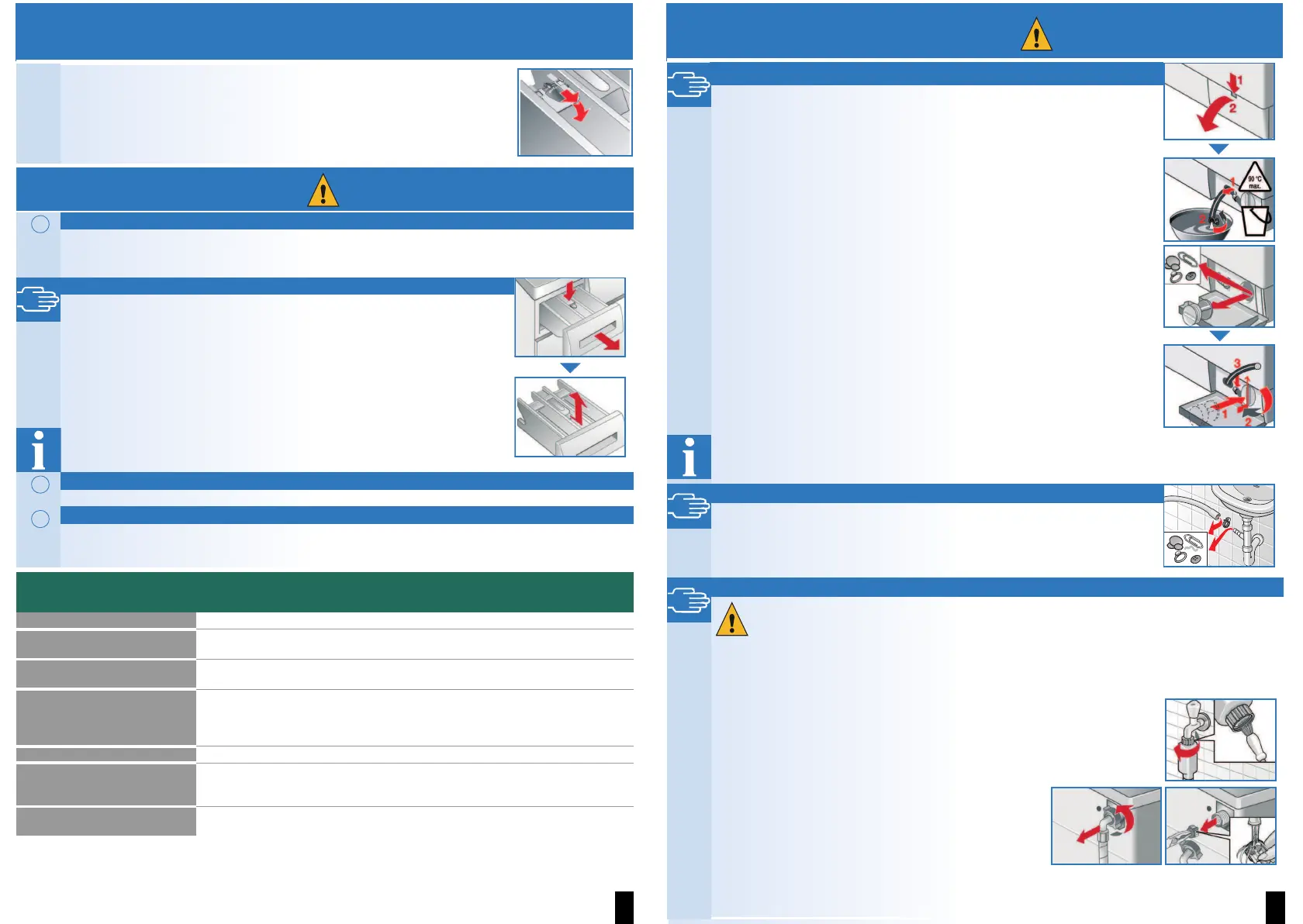 Drainage hose/waste pipe blocked; Clean the drainage hose at the siphon a page 11.
