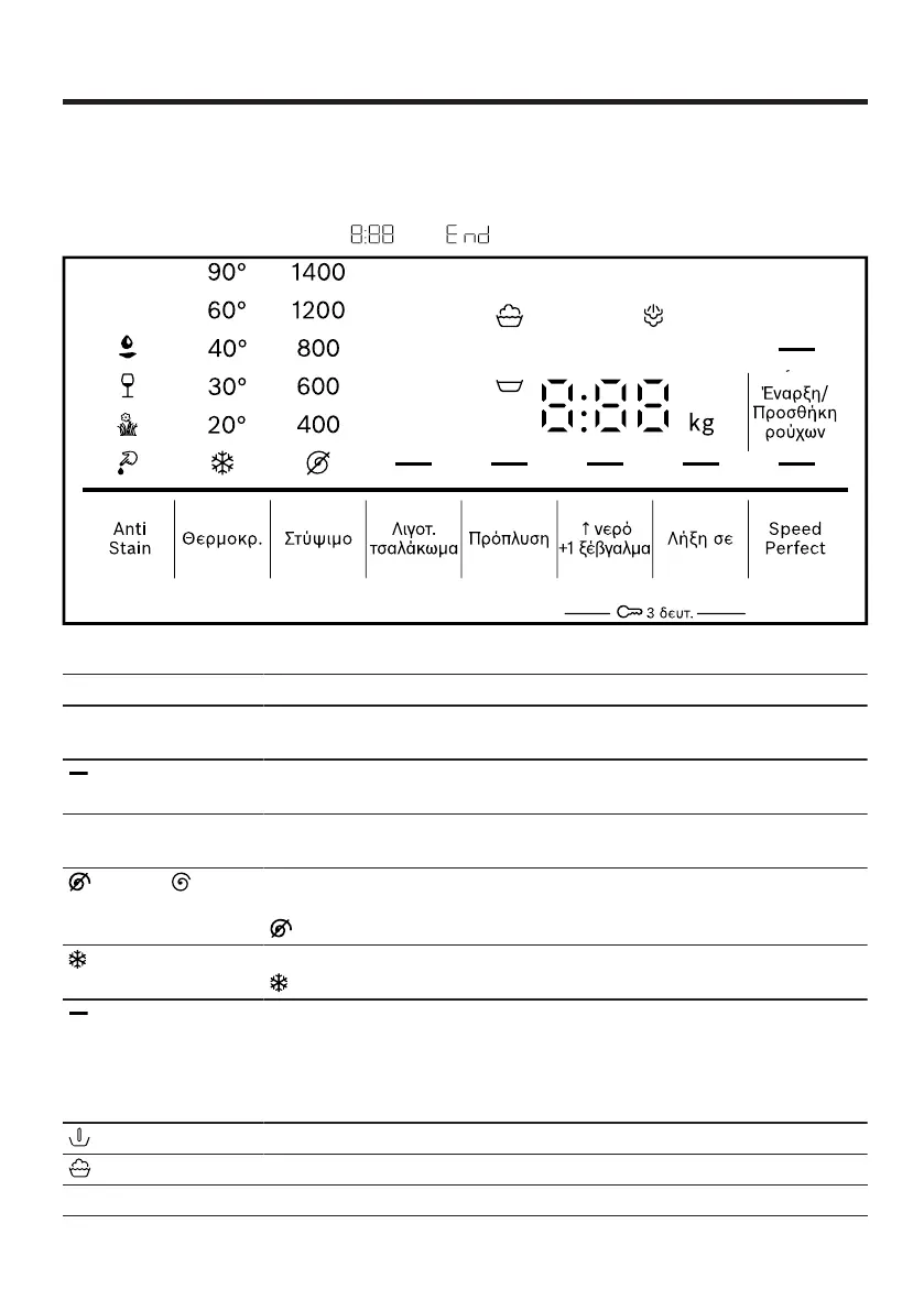 Στην οθόνη ενδείξεων βλέπετε τις τρέχουσες τιμές ρύθμισης, τις δυνατότητες